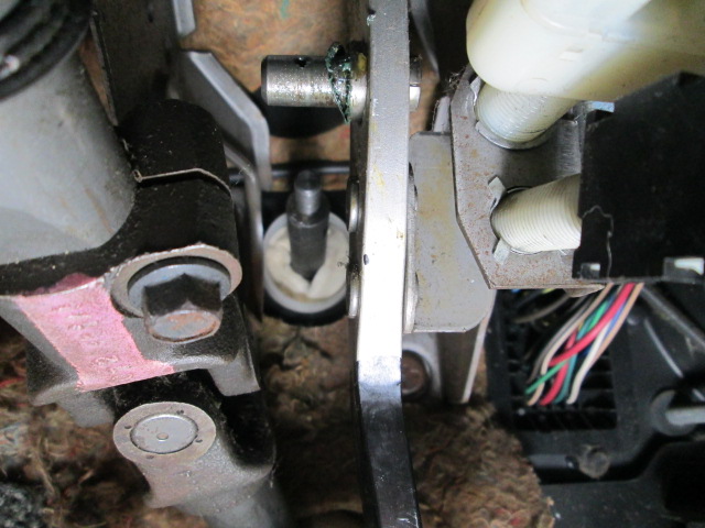 The mounting bracket that came with the new booster is unusable on the Fiero, and must be removed. Here’s the new booster with bracket removed and the pushrod all together.