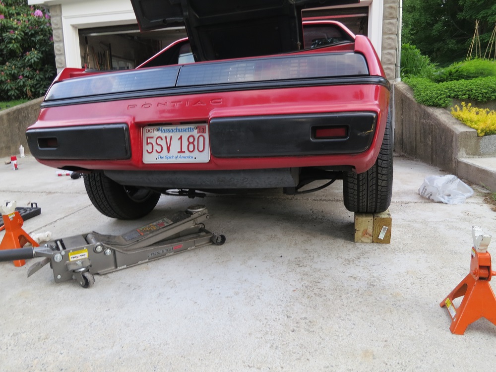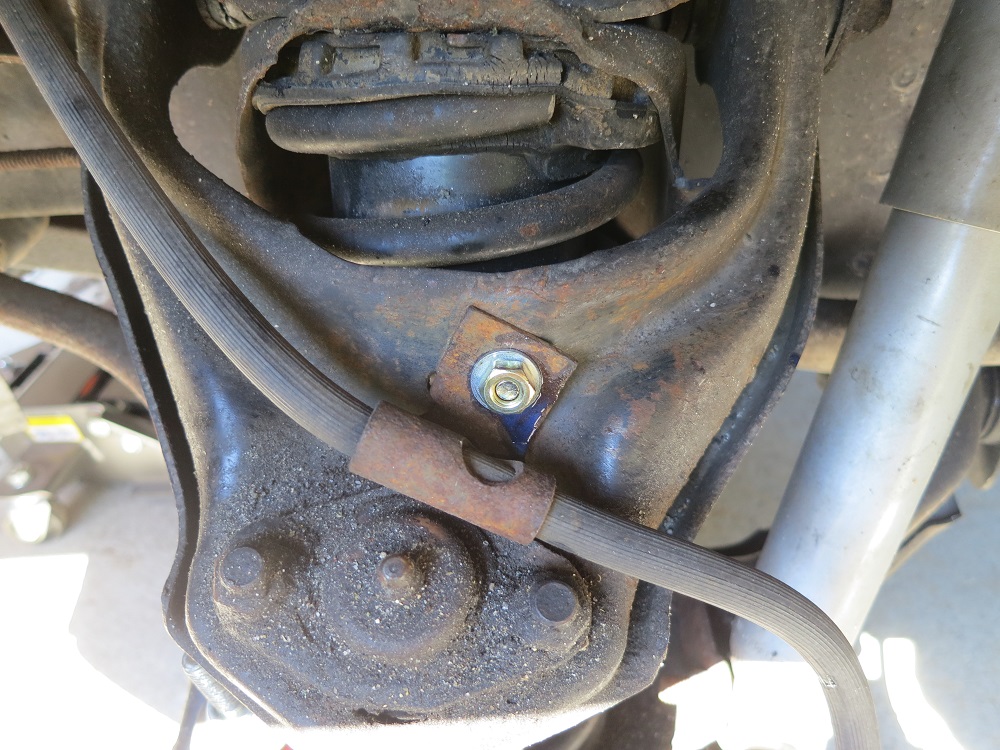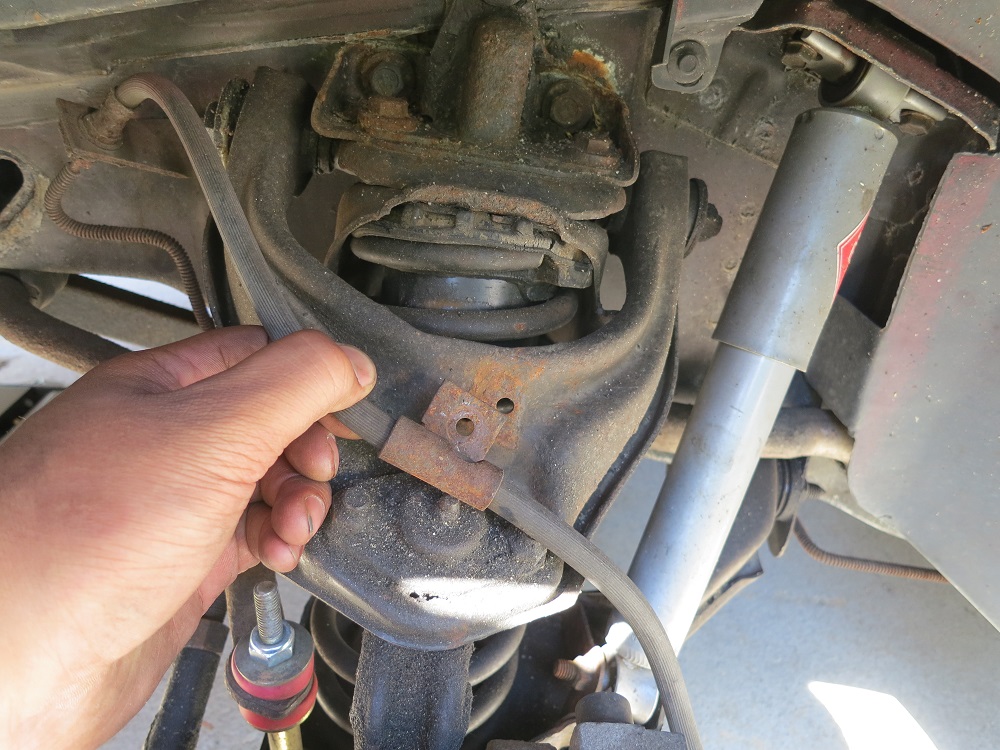I used heavy duty AC Delco rotors, and bought some nice Performance Friction brake pads. Because they are made for maybe a weekend autocrosser or racer, the bedding process included heavy braking from 100+mph down to 60mph 3 times. I also installed a full sized Blazer Master Cylinder and swapped the Fiero reservoir onto it. I also had to grind the front brackets down a little, but this is common knowledge so no picture. The brakes are great, and I have the perfect amount of pedal travel. At first I had very little travel until the brakes seated themselves. I think I will do the S10 booster swap in the future, because although I can lock up the tires fine, I have to push pretty hard. This picture is not from when the brakes were first installed. As you can see I angled the brake hoses so they are never bending at a tight radius. I retained them to the struts with cushion clamps.