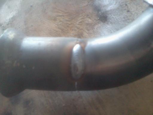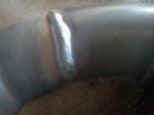 WOW! I had gotten so used to my aweful flux core that I forgot how it feels to weld when you can actually see the bead and don't get splatter everywhere! I managed to put down some nice welds on the exhaust tubing. I would weld around a third of the circumference at a time, grind it flat where I ended the bead to give a nice already sealed surface to continue. This allowed me to put down some pretty flat welds. Now here are pics and excuse the quality. The exhaust is awesome by the way. It is loud, but sounds amazing, almost exotic. I picked up a ton of seat of the pants HP from doing this (maybe 10). I have no restrictions in the exhaust, and the firewall is much cooler. I have had no problems with trunk heat even on long drives.