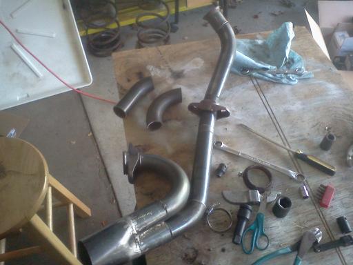 Box of parts including Muffler and the shape of the mandrel bent tubing I bought.