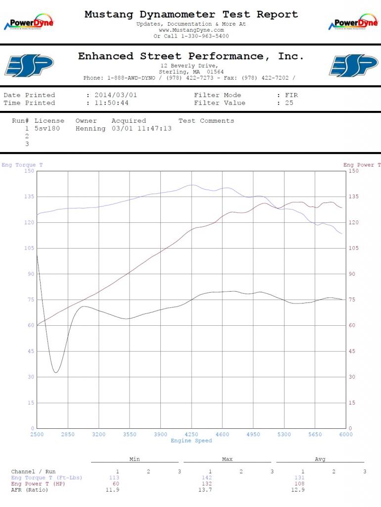 I got my car Dyno'd over the weekend at ESP in Sterling, MA. The dyno used was a Mustang Dyno. Because I am making max power at such high RPMs compared to stock, I can't wait to see if there is a noticeable increase in power when I modify my intake and bore my throttle body!