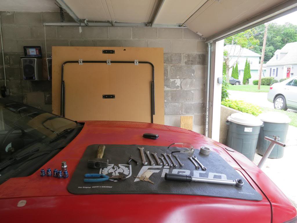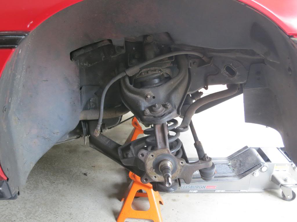 Well with the new tires with stiffer smaller sidewalls my car was scary on the highway with the poor alignment, I slotted the upper control arms to slide the ball joints back to put the wheels in negative camber vs positive camber they were in... Also I painted my swaybar and reinstalled it.
