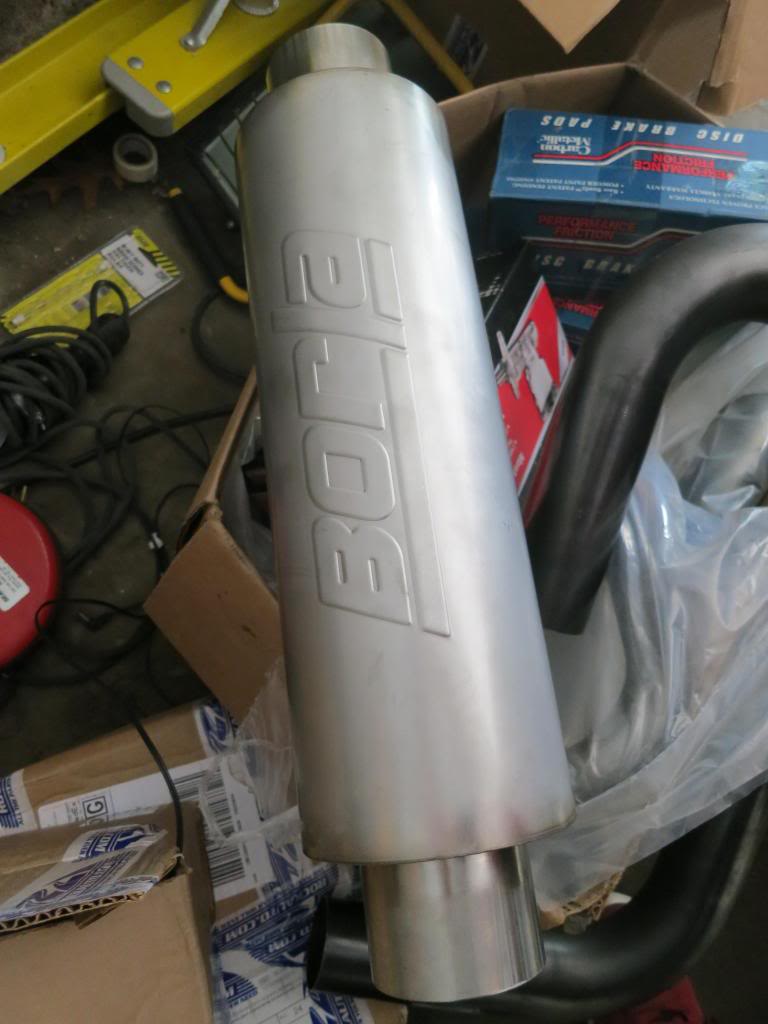 I had a side exhaust with 2" tubing and a cheap Thrush Turbo muffler and it was loud and raspy and droned like crazy. It also made it harder to change the starter and the oil, and brought more heat against the firewall and wiring. So I decided to fabricate a new Y pipe that went the other direction over the transmission to 2.5" tubing that snakes next to the trunk, through a 3" Borla XR-1 muffler with a lifetime guarantee (pretty much, million mile guarantee, 304ss). I have a flex coupling in one side of the Y pipe, and one after the Y pipe meets the rest of the exhaust. I don't have pictures of the rest of the exhaust at the moment.