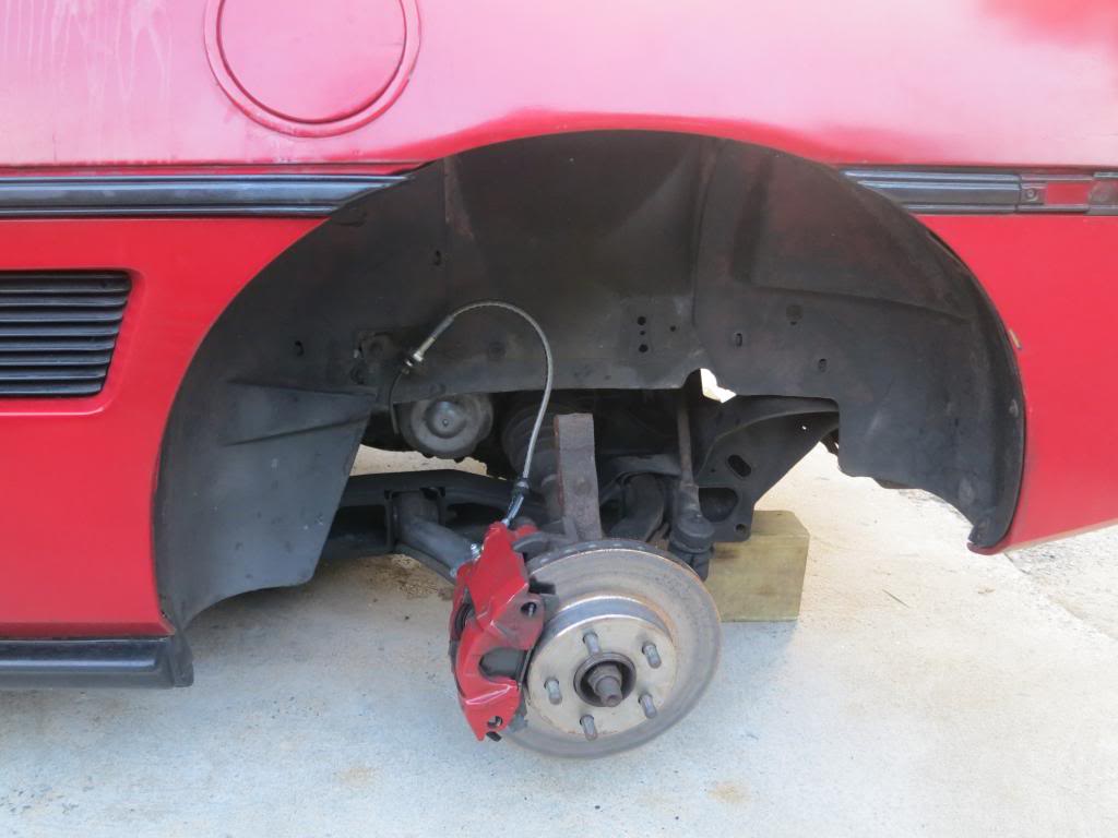 Now I'm moving onto my coilover conversion and GrandAm Brake swap. I swapped all 4 calipers with Grand Am front calipers, installed Russel stainless steel braided brake hoses, painted the calipers (well 2 of them because I decided the paint was not the best, and got the G2 epoxy caliper paint which I have yet to use).
