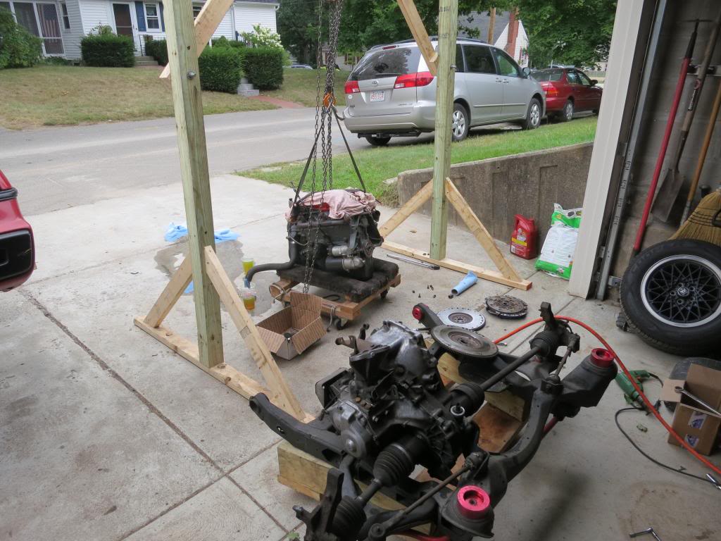 I am going to need to get a new flywheel though because the one on the car right now is only half correct. All the holes are drilled but the weight is missing from the back. So it vibrates, not terribly, and way less than with the 88 flywheel, but still it vibrates. So that will be annoying to change. Anyone have an easy way of doing this? I would love to not have to drain all my coolant and replace it/ undo everything just to hook it back up. I need my car for getting to work this summer so it cant be off the road more than a weekend at a time. I think that could easily be a weekend job though.