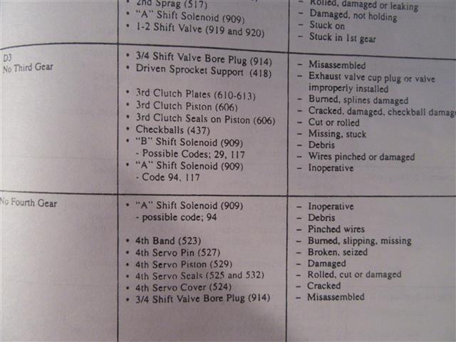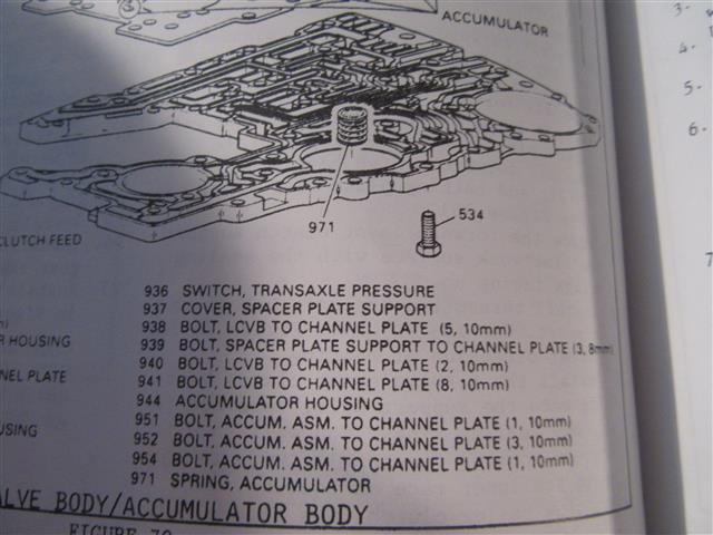 Oops! Shift sol B is on in 3rd and 4th, off in 1st and 2nd. stuck 2-3 shift valve = same result. I think there is only one channel plate, but there are different separator plates. Not sure if they are just calibration differences. I don"t know what combination you used. Marc