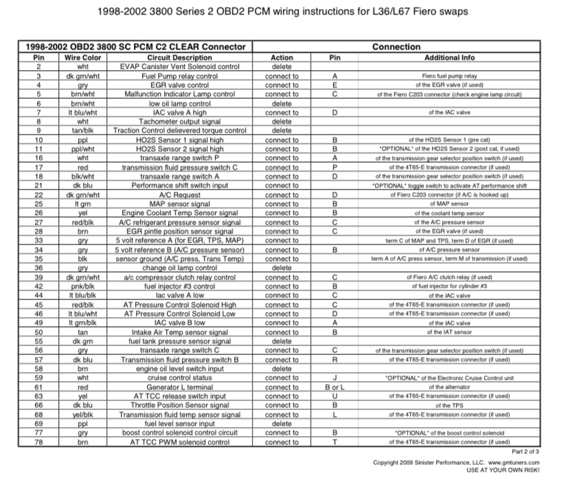 Now you guys might be wondering why I’m using the 1998-2002 wiring pin outs for my 04 engine harness and ECU. That is because I ended up using and ECM from Fast Fieros out of a 1998 Bonneville due to tuning incapability.