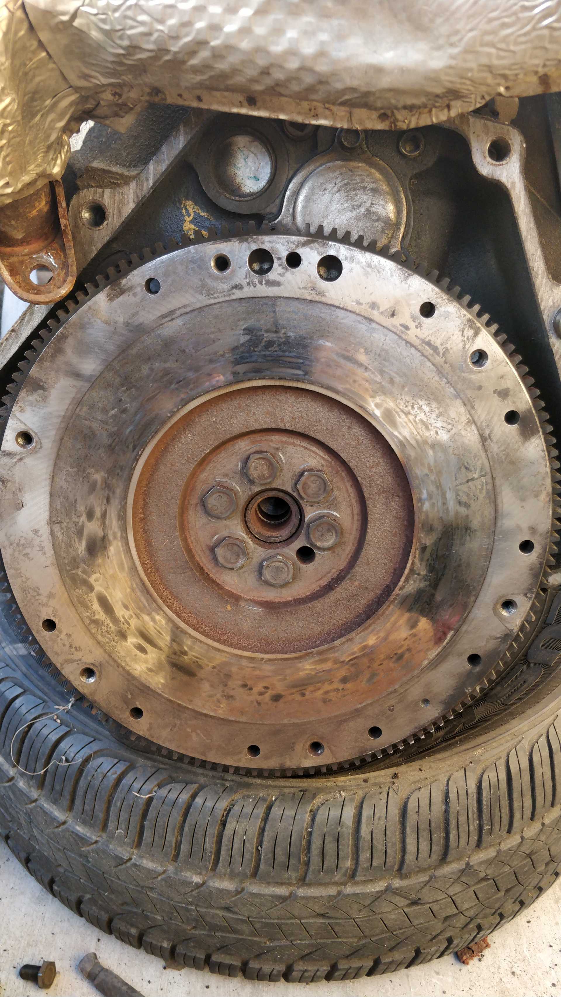 I installed the flywheel. I will probably curse myself later for not resurfacing it.