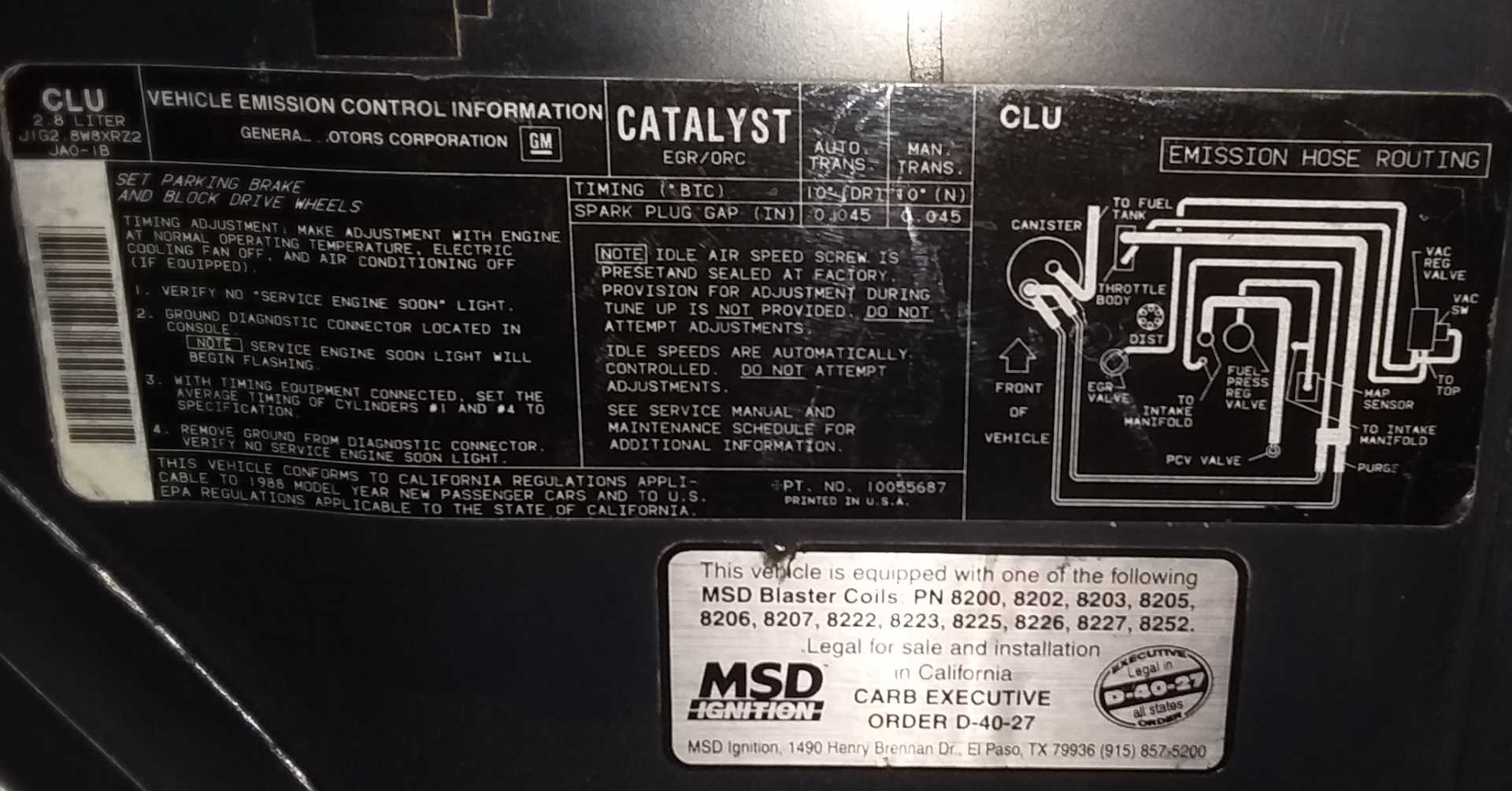 I think the proper way to handle this is just flip a ref $8.25 and do a real engine change using a 1994 Camaro as a donor. It should be fine, assuming they give you a pass on the Fiero exhaust manifolds and slightly tighter catalytic converter placement. I'm confident they won't hassle you on the manifolds, but *might* on the cat. You'd have to measure the linear distance between the Camaro's collector and cat and compare. If it's within six or twelve inches, you're probably fine. Then, problem solved forever. Well, until Camaro coil packs and EGR valves go NLA.  |