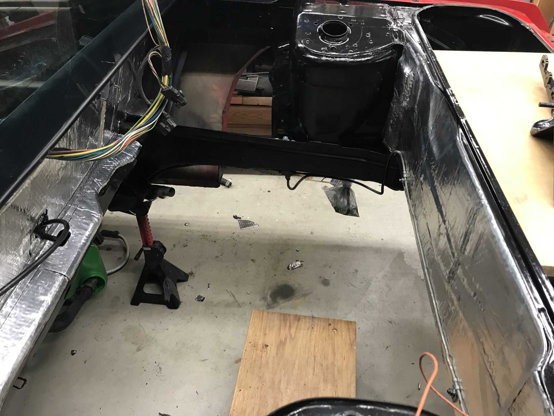 And then there is the wiring.So much wiring. I decided to toss the Impala harness in the trunk and figure out what to connect up to make it work and chop off stuff I didn't need. That turned out to be a long and difficult process that still isn't complete, I ended up unwrapping most of the harness to trace wires. The bottom line is to get the Mitchell1DIY access for your donor car for $30 for one year. You get complete schematic drawings, connector locations, pinouts and mechanical procedures that will save you weeks. Beats spending hundreds on the Helm books. Since my car is a 2018 I need certain modules that are VIN coded to make it work. I wanted the instruments and keyless entry to work so you need the following ECU (E39A), Body Control Module, Chassis Control Module, Serial Data Gateway, Keyless Entry Module, Brake switch, Press to start button and gas pedal; otherwise it won't work. I also wanted the instruments to work so include the IP. There is also battery current sensor and the fuse box (underhood) and keyless entry modules. There is also a special keyless entry coil in the center console. This talks to your "key" and lets the car start if the battery in the key is bad or the sensors are dead or disconnected. The fuse box also contains lots of relays for things you no longer have. I've re-purposed some of these to tie into the Fiero electrical system. This fuse box went over the top of the transmission. Also other minor but important stuff like the shift knob. The power to the fiero system now comes from the fuse box "Always Hot" through a fuse and ties into the wire from C500 (which is no longer in use) and the high speed fan relay (50 Amp) now is repurposed to provide the "Hot in Run" wire, also from C500. Under the dash the wires to the fuse box from the key are tied into the wires from the engine bay. The old transmission and steering interlocks are mo longer used. the key now does nothing.