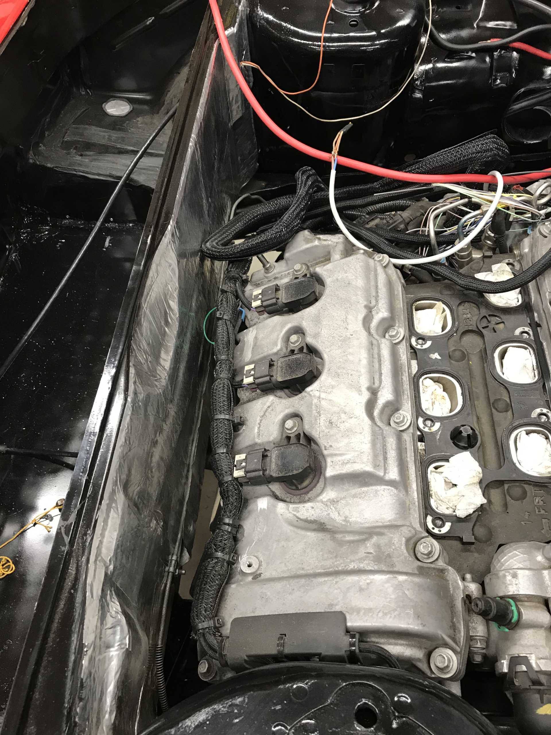 So here is the semi-finished engine bay wiring. Cleaned up, not yet bundled and not fastened in place