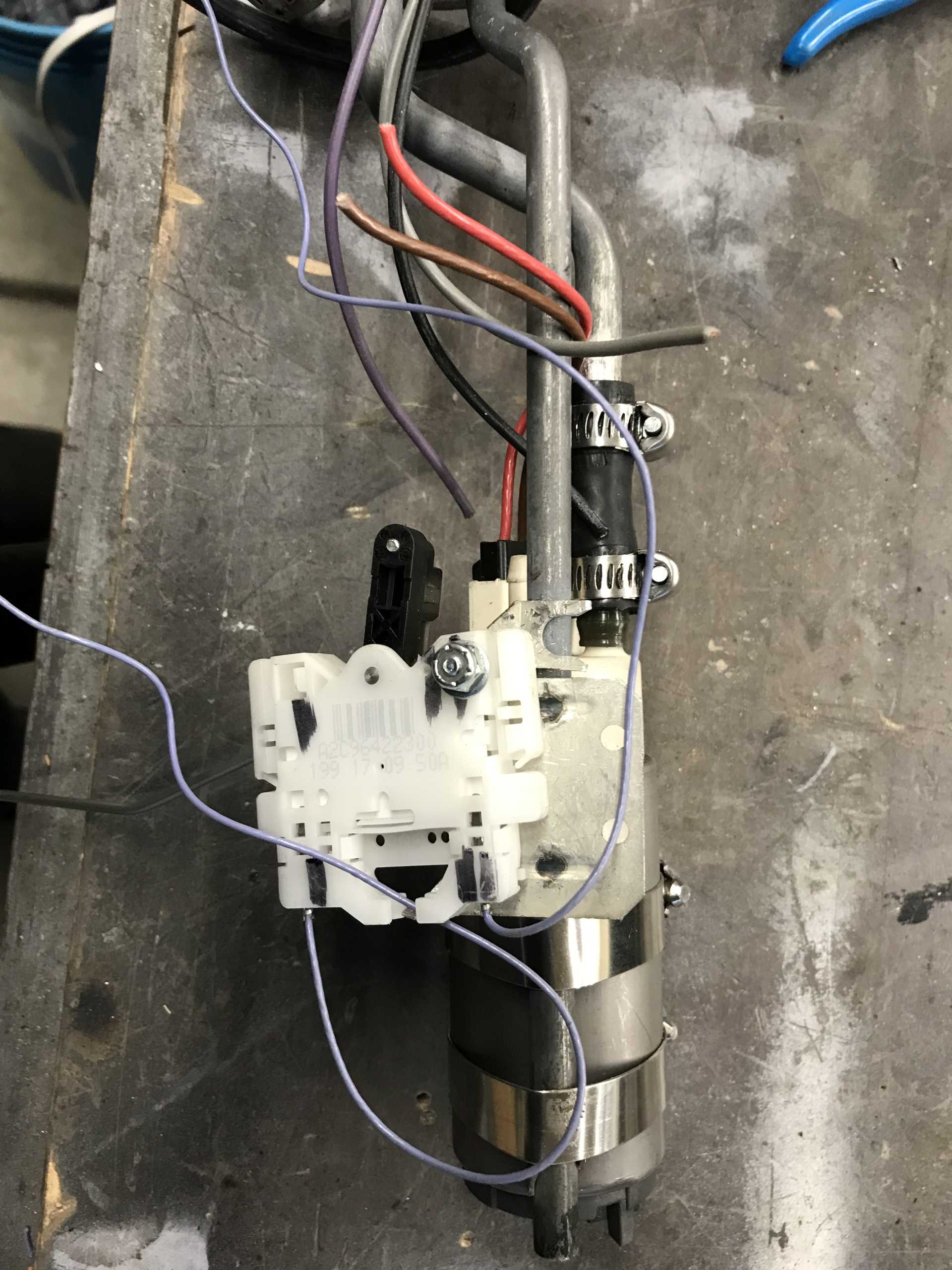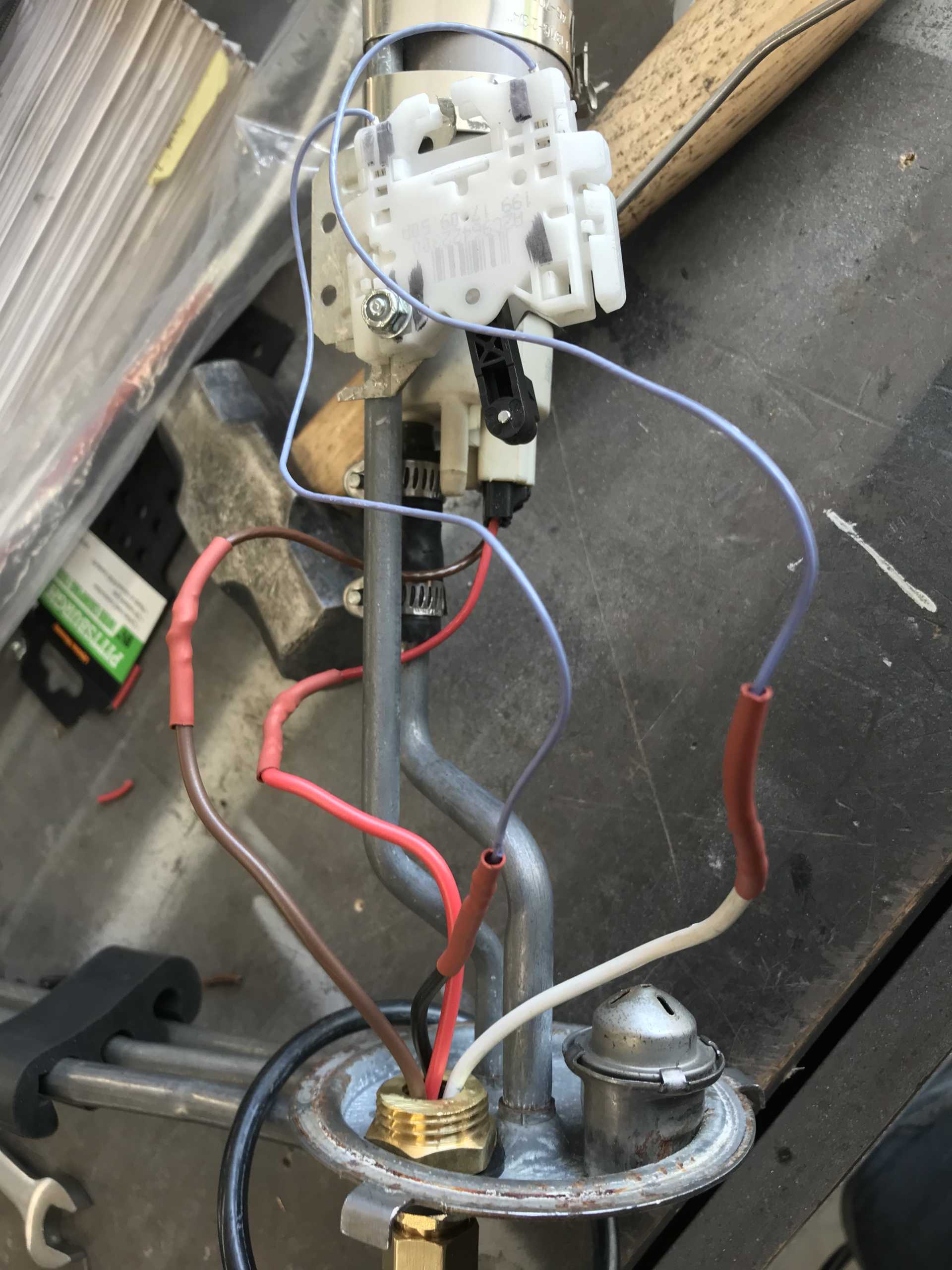 I had intended to use the Impala fuel pump with filter, pressure valve and level sender but it's huge and simply won't fit. Taking it apart was able to salvage the pump and the sender. The 55PSI pressure limiter will need to be external from a Corvette. Getting the pump to fit was simple except that it has a bottom opening to provide a siphon to suck fuel from the tank into the sump. That needed to stay and was cut down to fit. The senser was more of a problem. Different resistance from the fiero and needed to be fiddled with to arrive at a suitable position. Getting the float to work properly was difficult due to the internal baffling in the Fiero tank. But eventually it fit. The Impala uses 4 wires so the wiring fixture needed to be altered too.