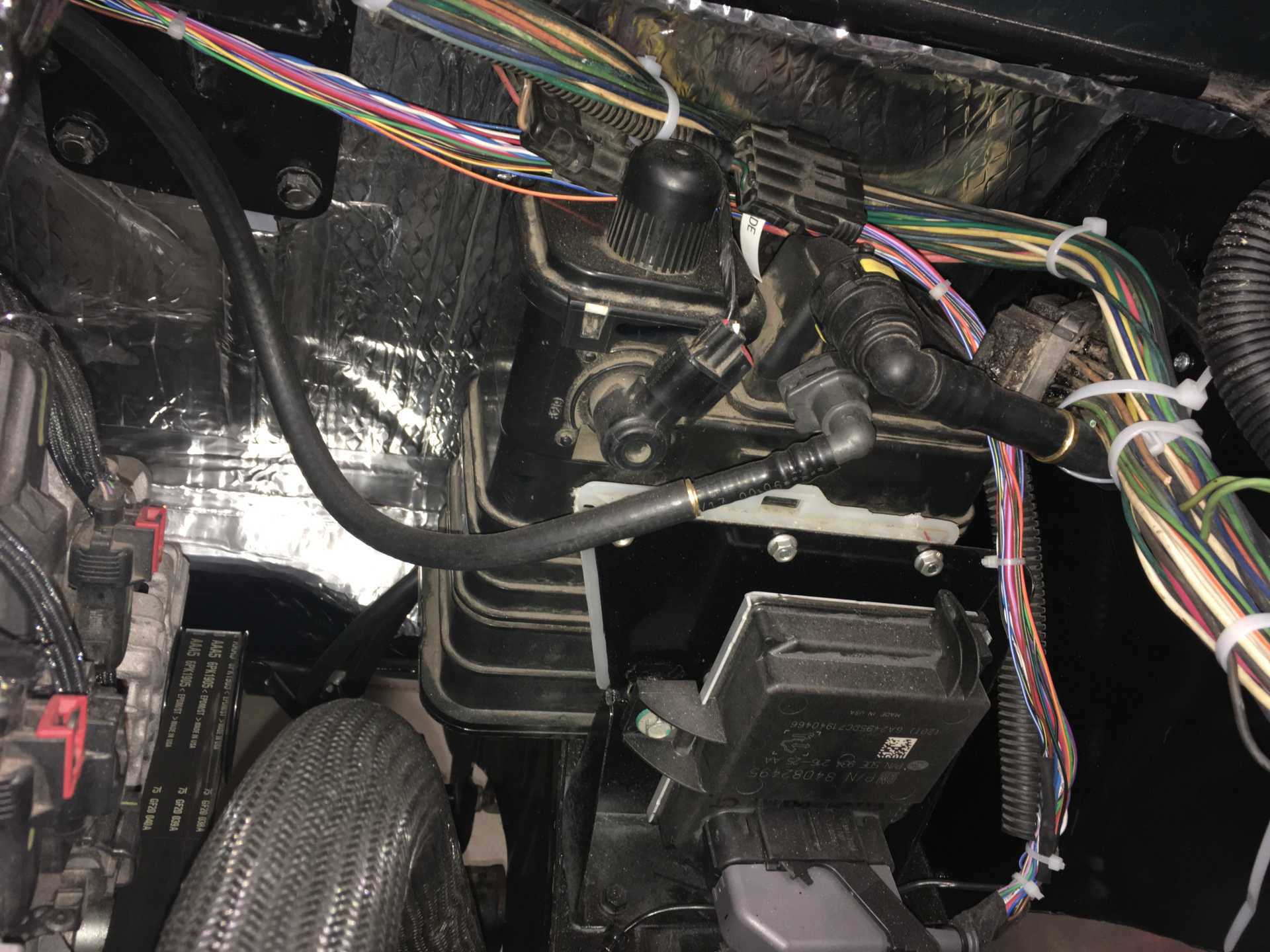 I spent almost 2 days sorting the wires that stay in the engine bay and those that were to be routed thru the firewall cable openings. Then a day cleaning up the engine bay wiring. The passenger side now looks like a wiring scrap yard. But everything is there. Now some wires needed to be extended for the accelerator, Brake switch and push to start. There may be more but that's all I'm doing for now.