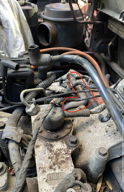As I understood, the tube I indicated supplies air to the cold start injector, so if it leaked a lean condition would happen. But maybe that was incorrect?