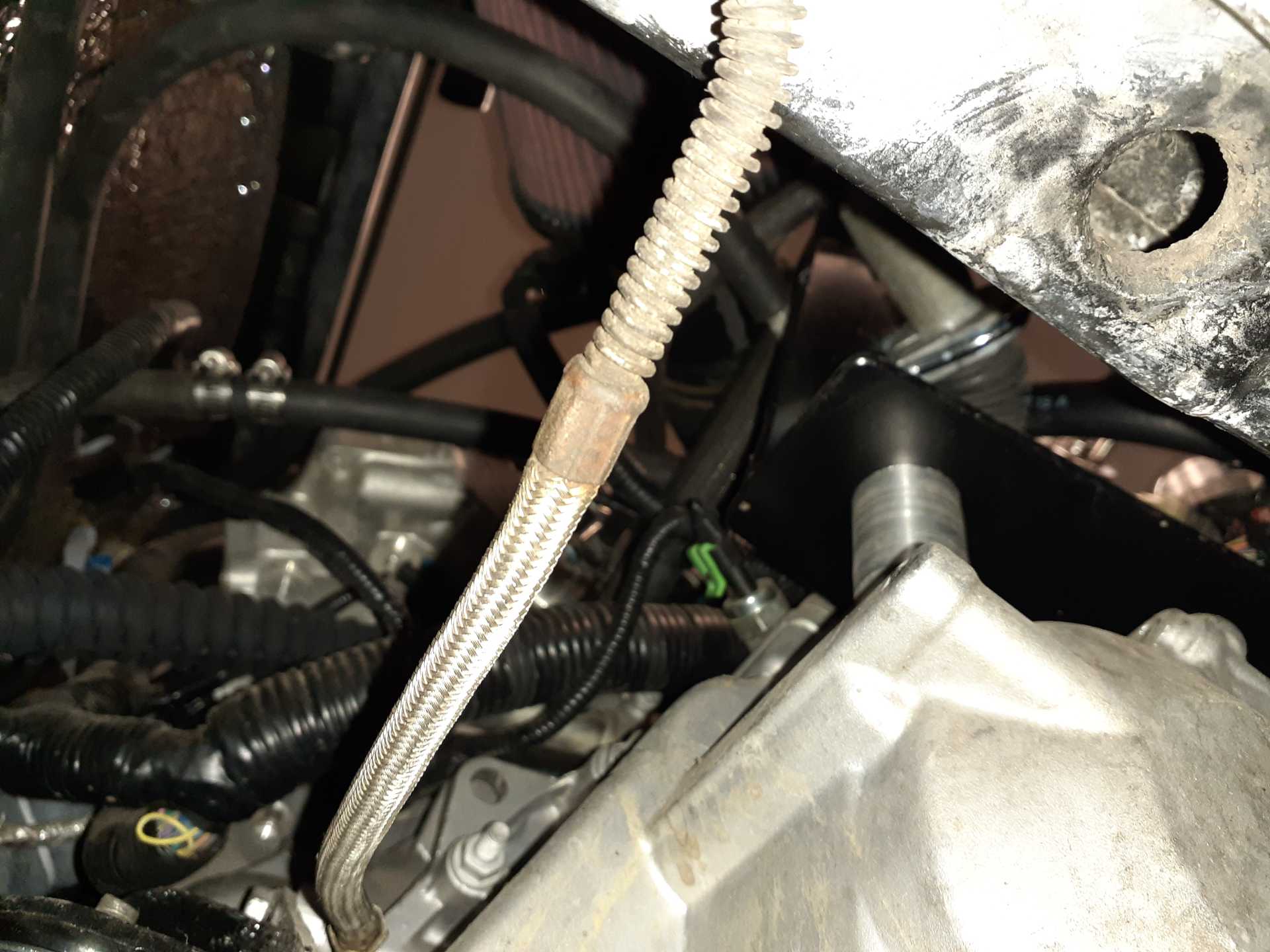 I'm thinking if I could find or have made an adapter piece 6 inches long, to connect the two pieces shown in the first photo below, my problem would be solved. The black composite piece, I think you called it the Bleeder, fits the fitting on the transmission. The other side of the black fitting fits as shown. What do you think?