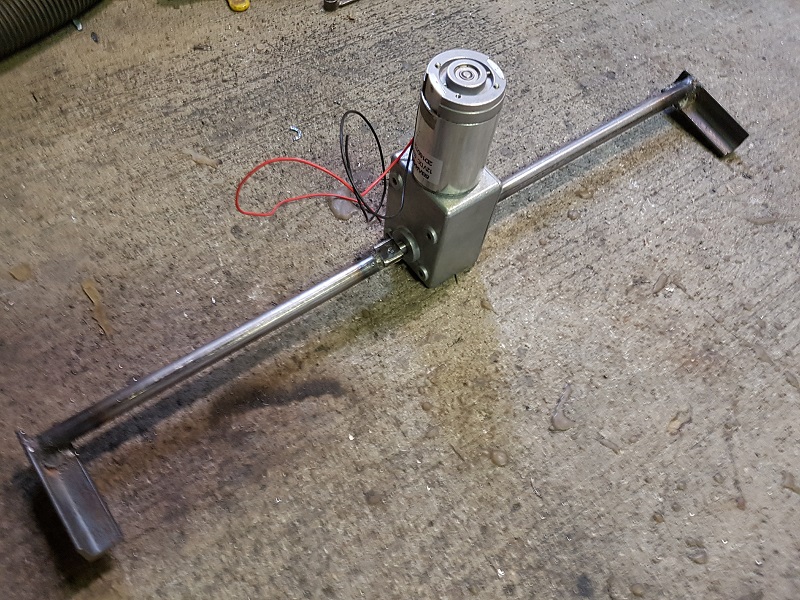 I took a few minutes to weld the adjustment plates into place for the spoiler hinges (plates can be seen in the previous pic). I can now properly align and clamp the spoiler hinges in place (to the plates)....giving me the ability to fine tune the adjustment. Almost. Before I align anything, I need to put together a bracket to mount the motor to the frame otherwise it will be the only thing spinning when I put power to it... Of course it will need to be adjustable too since it is rigidly mounted to the spoiler hinges.