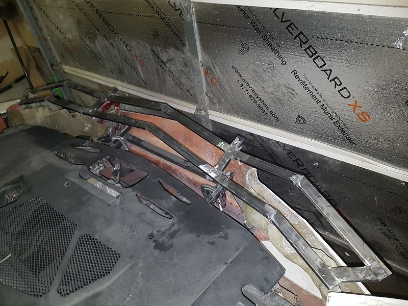 I completed welding the spoiler frame. I've also welded threaded inserts into the spoiler frame to ensure I have solid mounting points for the hinges. The hard part will be lining up the spoiler frame & hinges and then creating the required mounting points on the car's frame.