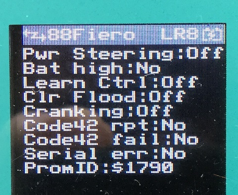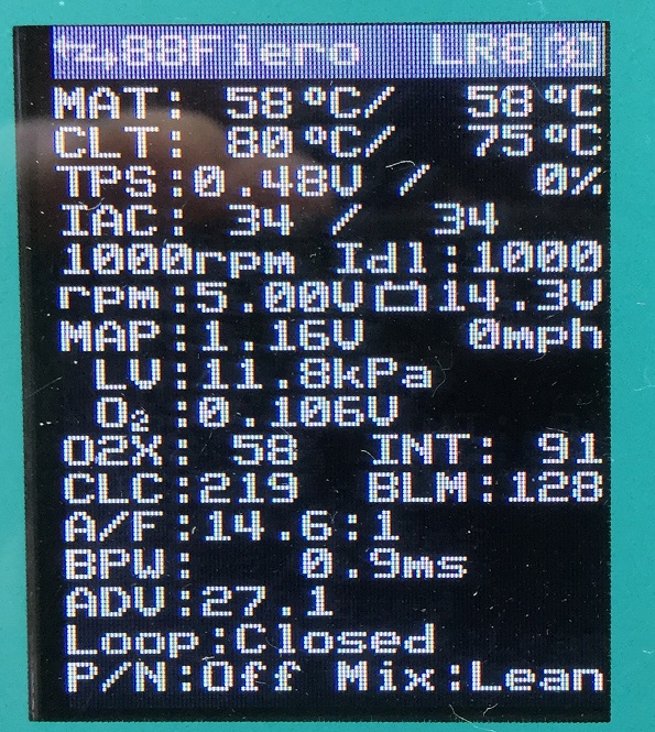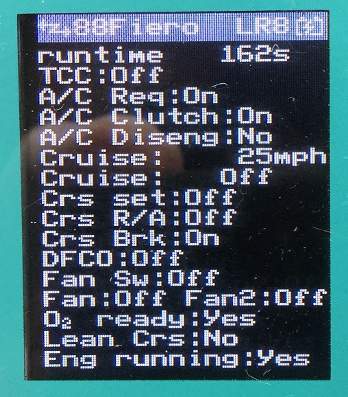 OK, please help me out here. I've got a new scanner, which works for ALL models of Fiero (yes, also for the 87-88 DIS Duke ). Below are the scans from the warm engine, no trouble codes, what am I missing?