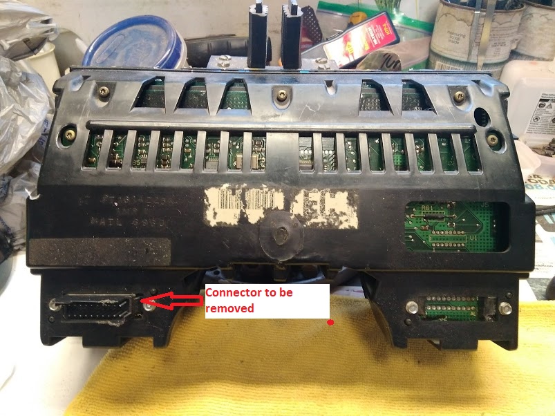 The operation is to remove the IC rear connector to gain access for the installation of the IC in the Fiero surround. By removing the connector an inch or two of clearance is gained for installation of the Riviera digital IC into the Fiero surround.