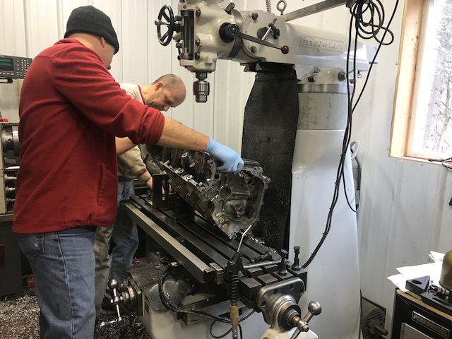 My dad and Mr. Eric are pictured here trying to align the block on the Bridgeport. This took an hour or so.