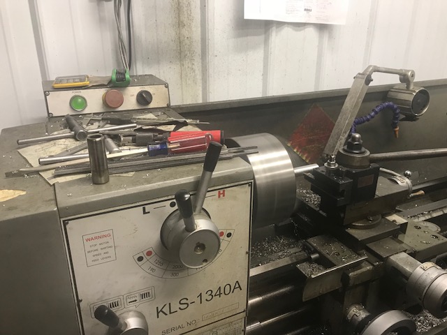 That's okay, this is an easy fix. I used a piece of 1" round stock. Coincidentally, it had the perfect inner diameter of 1/2", which is what we need. Note: The length of my tube was .970" (thickness of the flange) + .240" (thickness of the material) = 1.210" long.