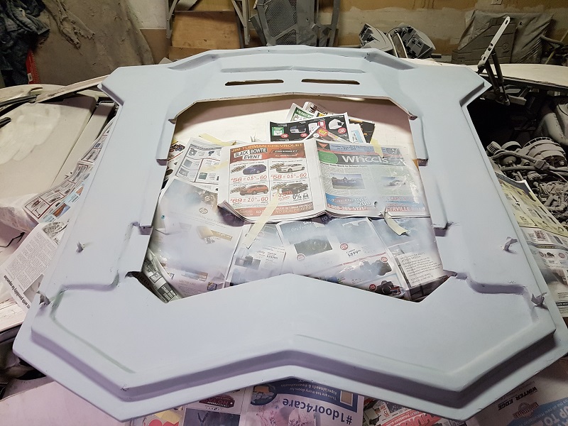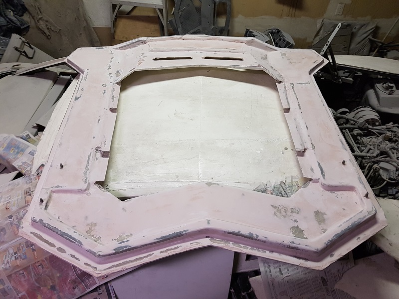 I sanded down the hatch's inside surface and gave it a quick coat of primer. I still have a number of imperfections that will need some attention.