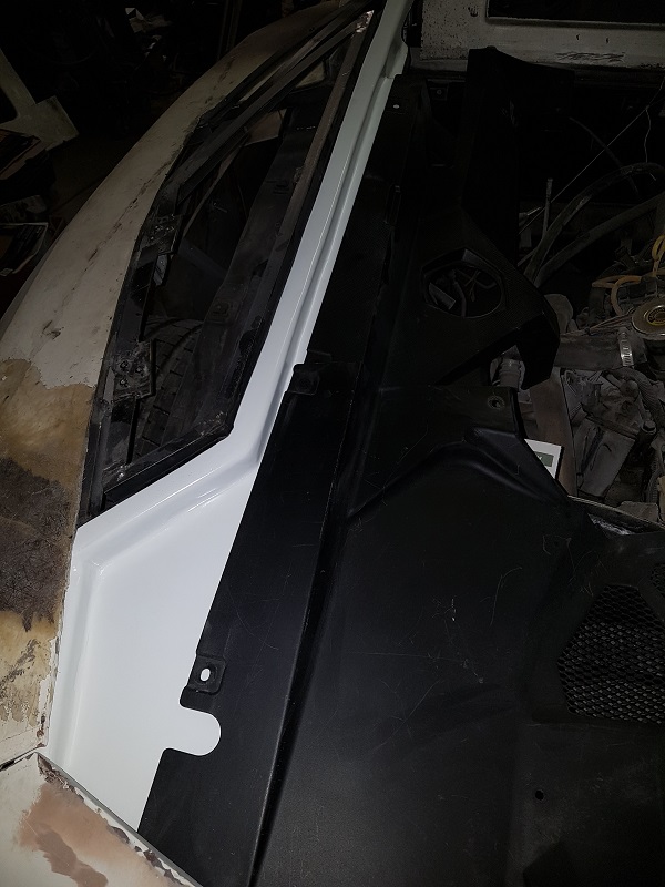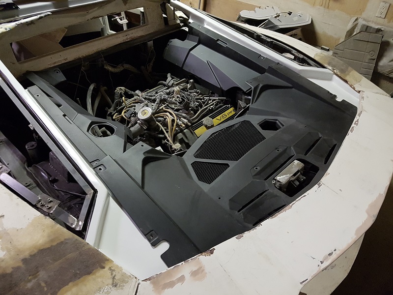 I started to do some interesting fiberglassing work around the engine bay. These two pieces are used to cover the framing and also become a mounting point for the engine bay trim pieces. These two pieces still need to be finished (trimmed and smoothed out with a little bondo). I had to remove the alternator and belt tensioner since they interfered with everything. I'll need to find a new spot to mount the items I removed. Of course I'll have to pull the engine to do that...damn. Think I'll procrastinate on that for a while, lol. When I do finally get around to pulling the engine again, I'll also mount the AC compressor.