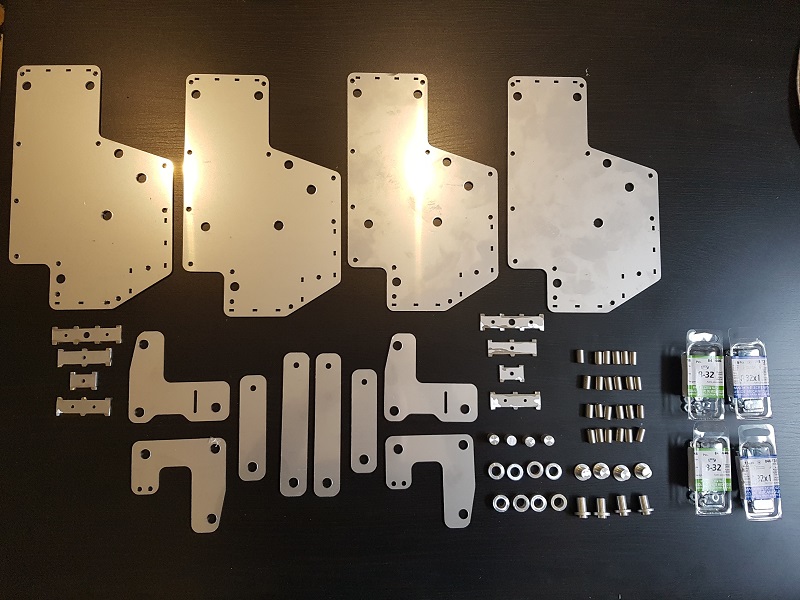 So I redesigned the system and had the components water-jet cut from 316 stainless steel. This covered most of the components. The remaining components were machined on my lathe. (note...there are about a half dozen small connectors that are not shown in the pics below. I also had to make adjustments to a couple of the minor parts as a result of a little binding).