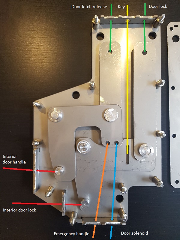 The door latch/lock connection mechanism is a prime example. I need to connect the latch and lock mechanism (which unlike most cars is actually in the door jamb, not the door) to a number of components; the interior manual handle, the interior manual lock, the electric popper (triggered by the external door switch), the external emergency key and the external emergency release handle. There is no stock item available to handle all these functions unless I splurge for OEM Aventador components. As you can imagine, that's not a cheap option.