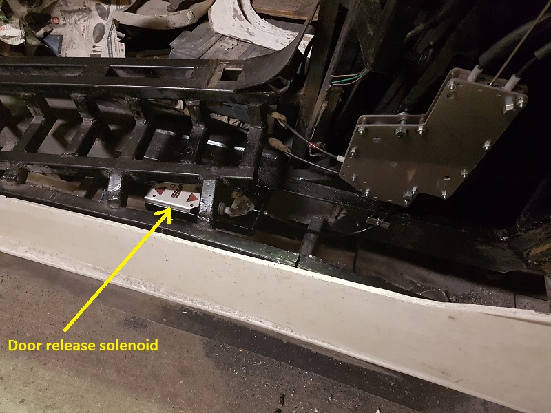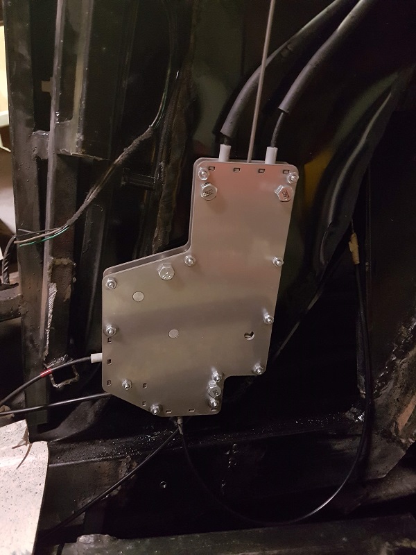 The solenoid sitting in the new bracket, tucked behind the rocker panel.