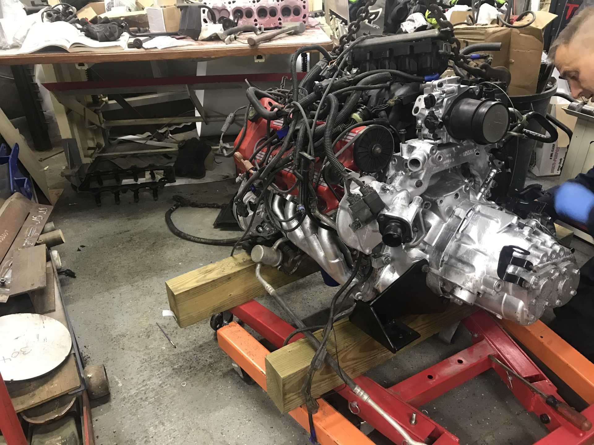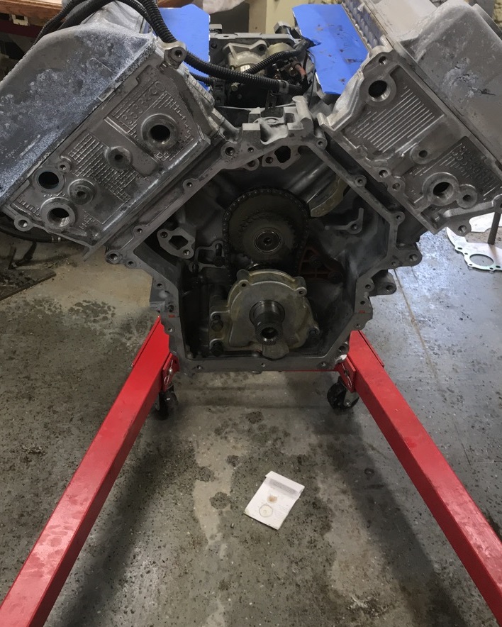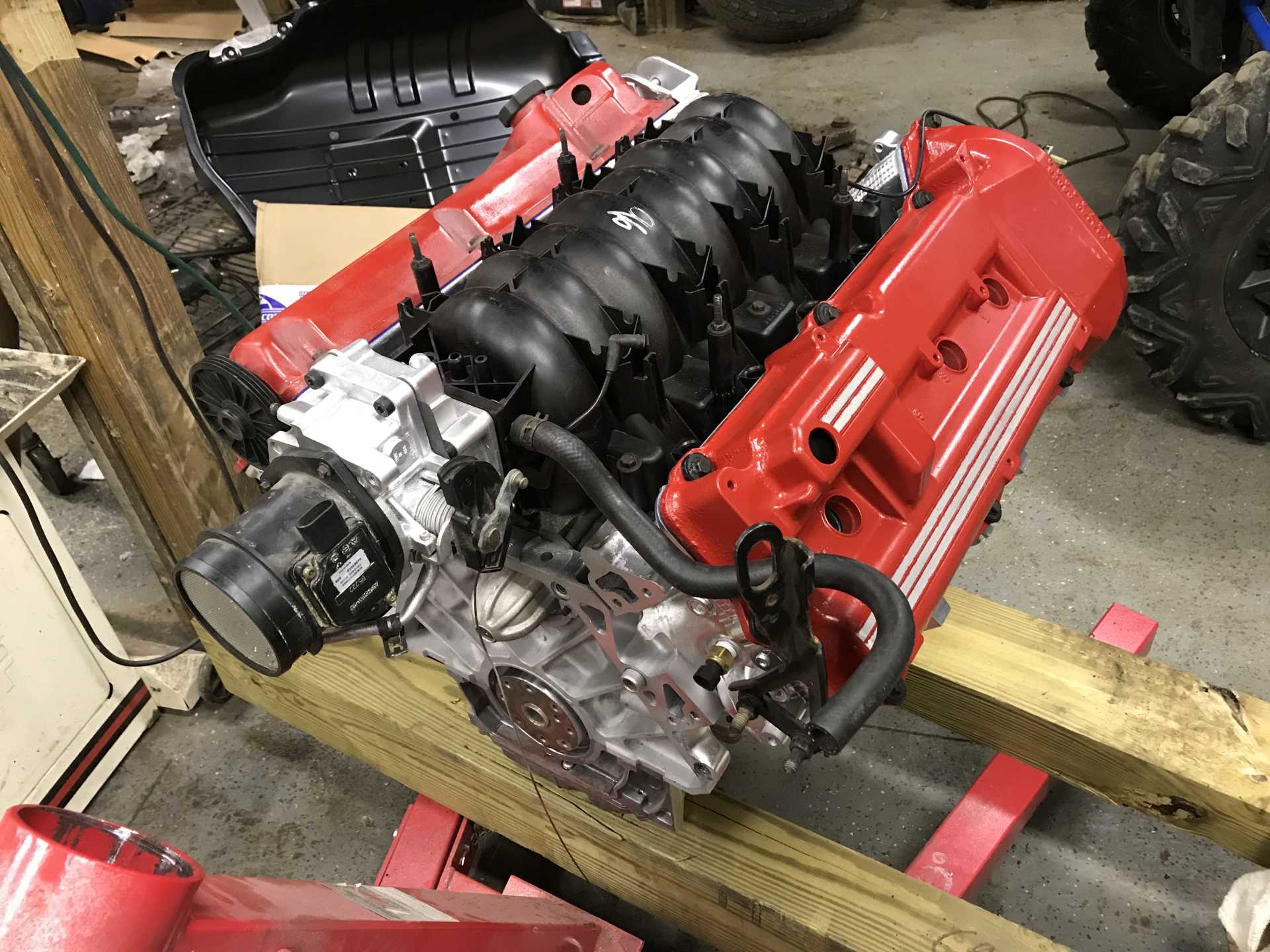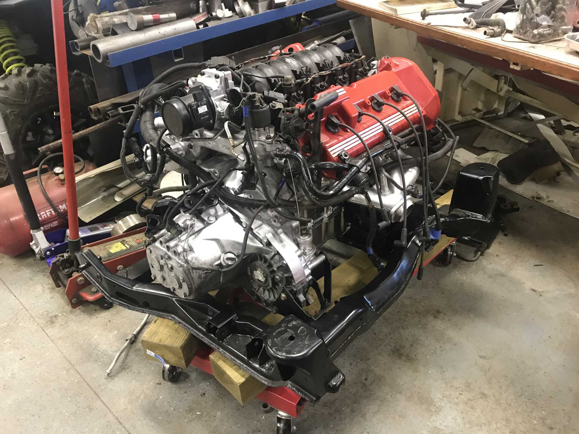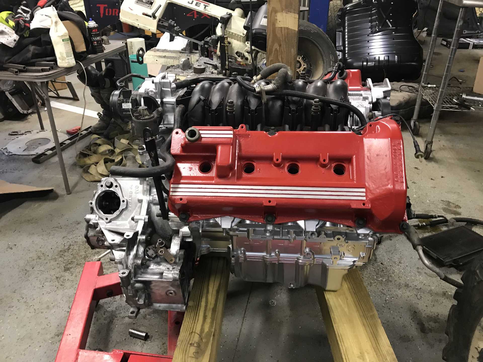 And this is how the engine sits today. The wiring is on it but had since been removed. I am taking it to oljoedad to redo. I wanted to figure it out myself, but it is beyond me and my dad’s knowledge. The harness if for a ‘93 Northstar Fiero and I have a ‘96, so it’s just not going to work. After the wiring is done, it could go in the car!