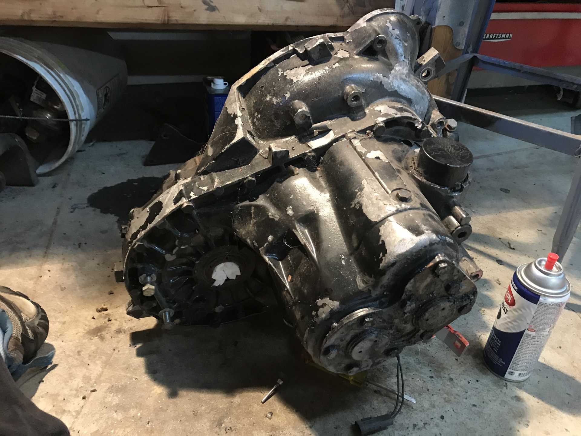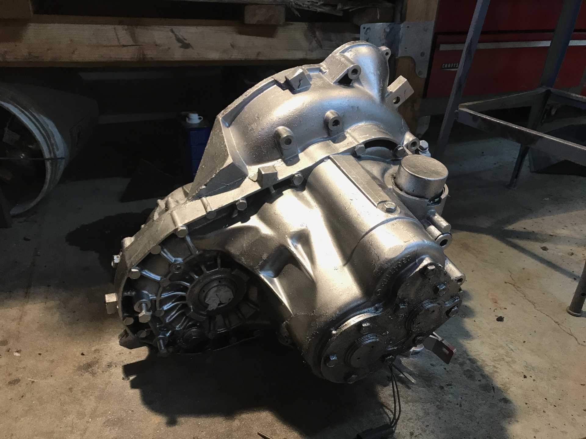 The POs painted the 5spd getrag black. I stripped it all off, cleaned it up and used some metallic spray paint.