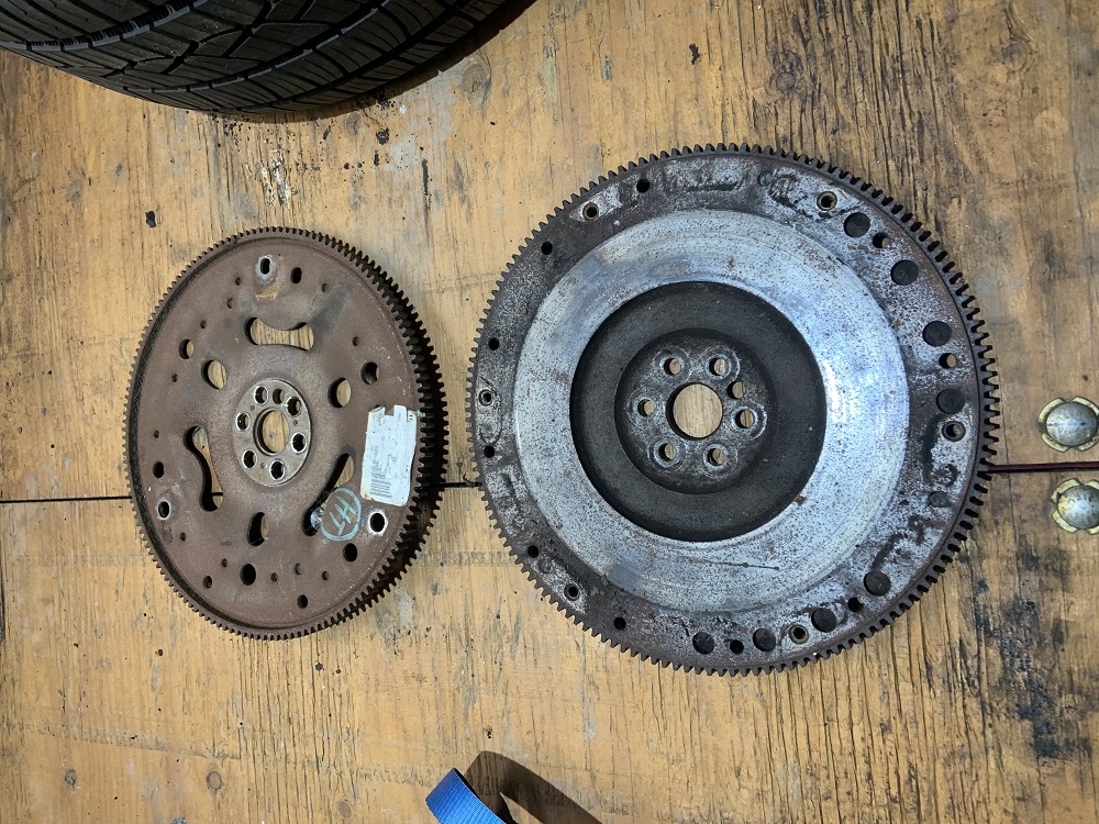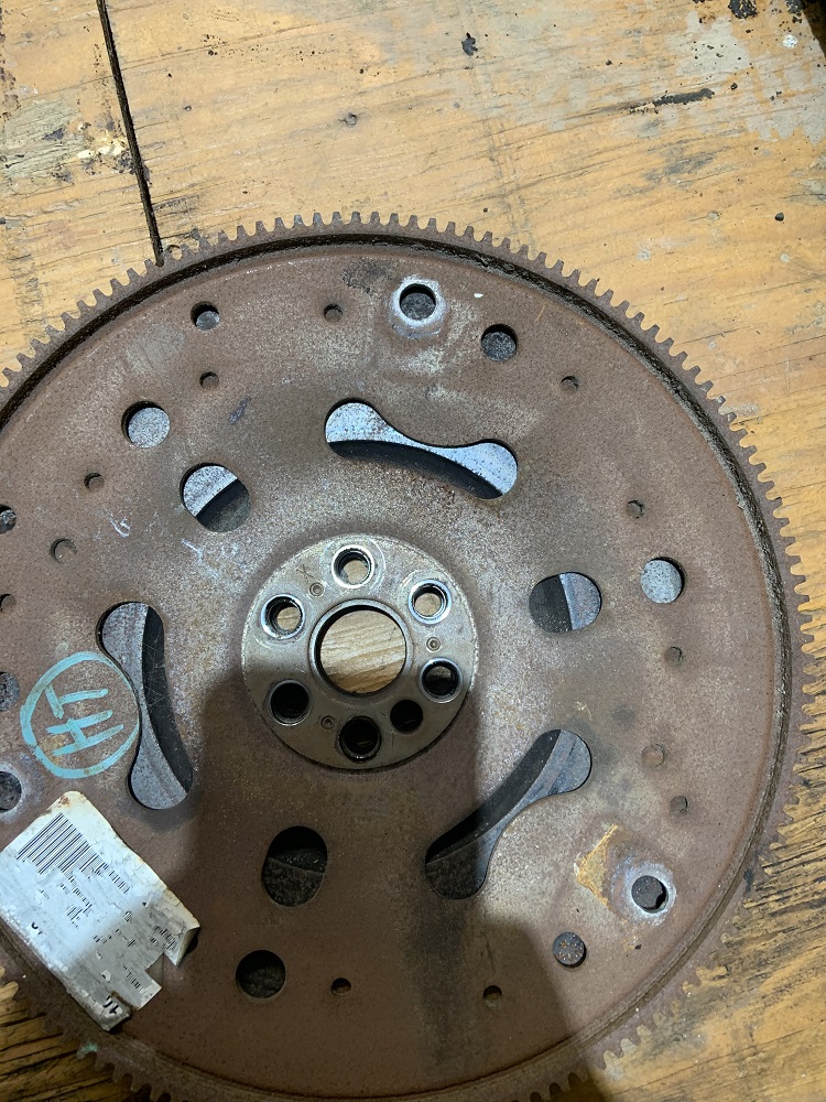 Got the motor home and on the stand, I checked out the flywheel from my old 2.8 and it matches up with the flexplate that came on the motor perfectly. I will need longer bolts though as the flywheel is significantly thicker than the flexplate. Pictures to confirm their shared features.
