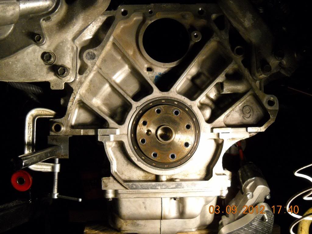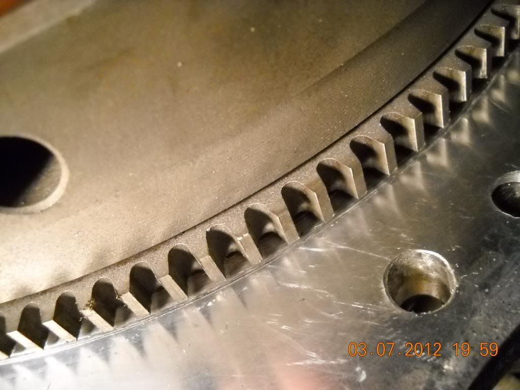 I had another issue when I removed the flywheel. The bolts were alot looser than I expexted. I forget what I torqued them to, but I think I over stretched them. Here is a pic of one of the bolts I removed compared to a new one. You can notice the deformed threads.