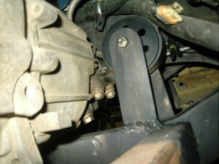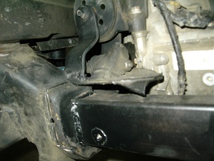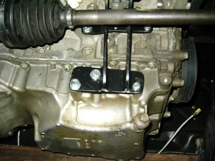 I used poly engine mounts (Jeep application). Front mount using stock bracket to engine (note the new front and rear crossmembers to support the side engine mounts.: