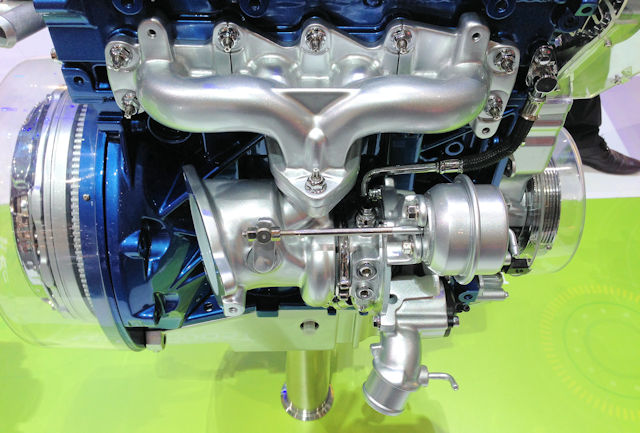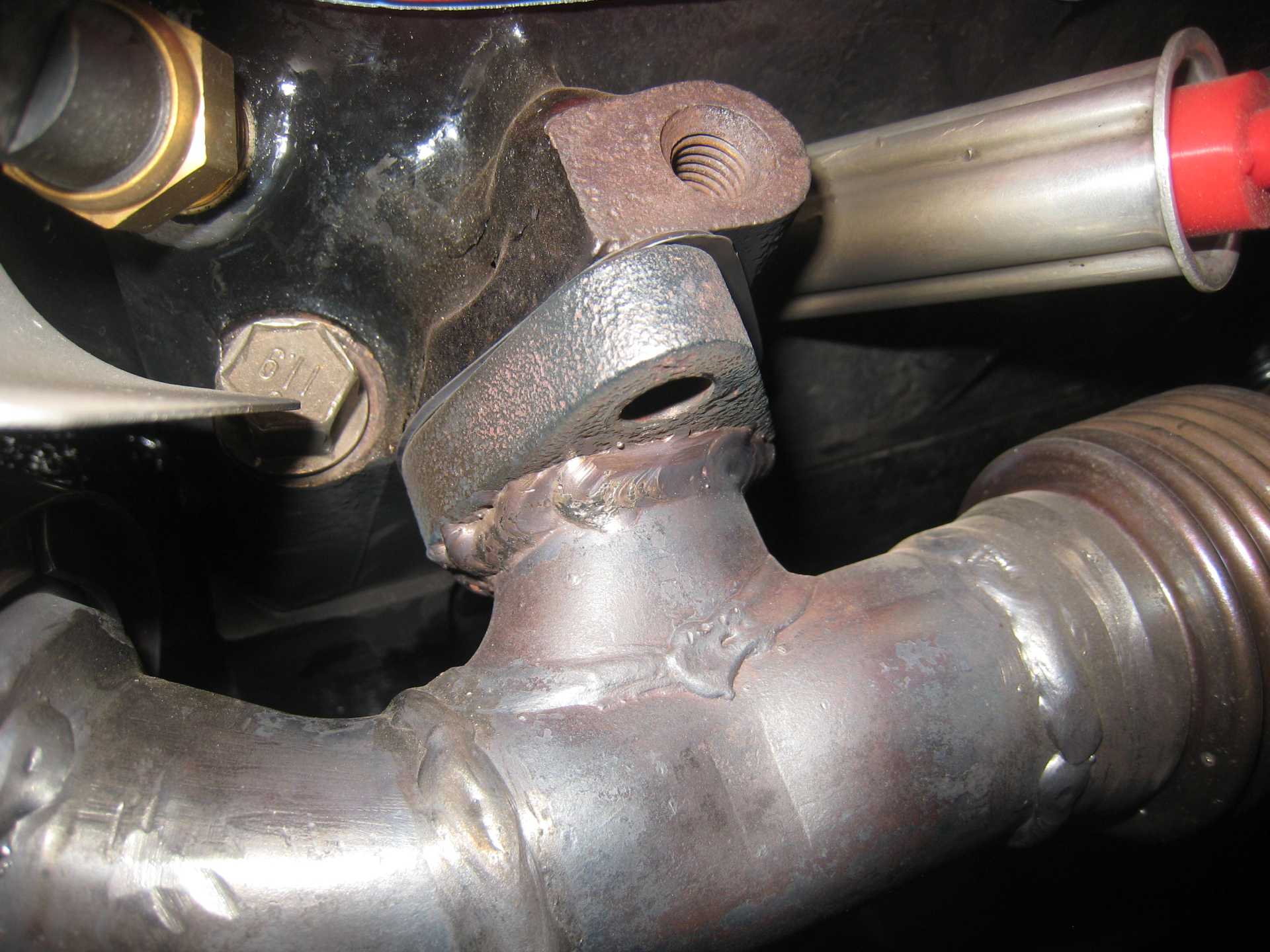 What I see on this image of the manifold (lower in the link) is that it is on the side where there are no flex pipes between the turbo and this end of the manifold and after this part of the manifold there is a flex, + it is the bolt from the top which is missing so it is the weight of the turbo which moves this part of the manifold which does not have the rest of the 2 other cylinders on the manifold to prevent it from pivoting.