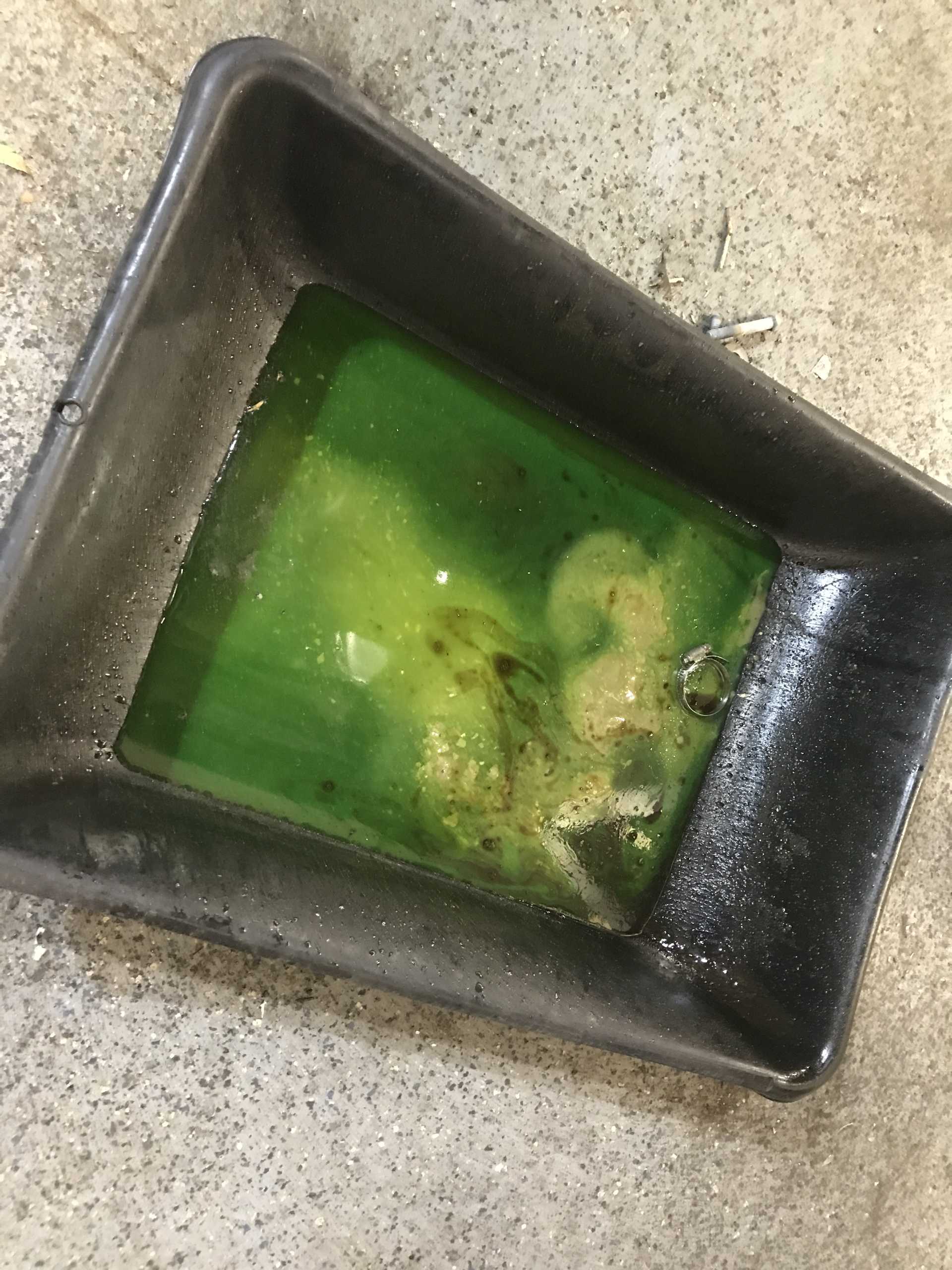 There was a lot of white sludge in the radiator. Ignore the oil it was just leftover from the pan.