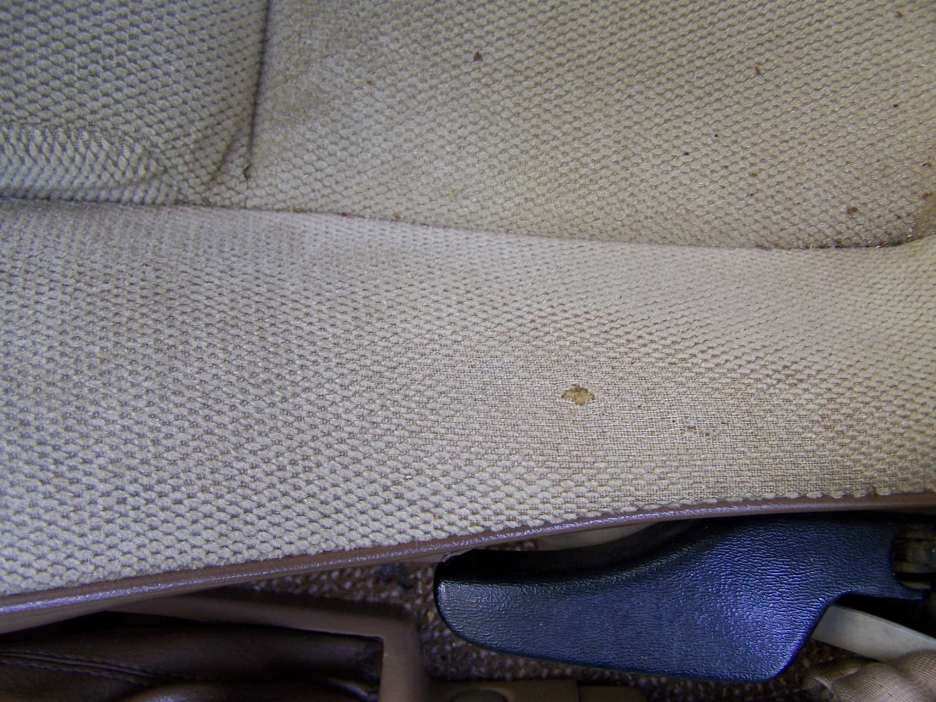 The driver's seat outer cushion is wearing thin and a small hole has appeared. The wife is pretty good with upholstery so I would like to acquire a section of cloth from an original seat to use as a repair section. It will be greatly appreciated if someone has a hunk of the cloth for the repair
