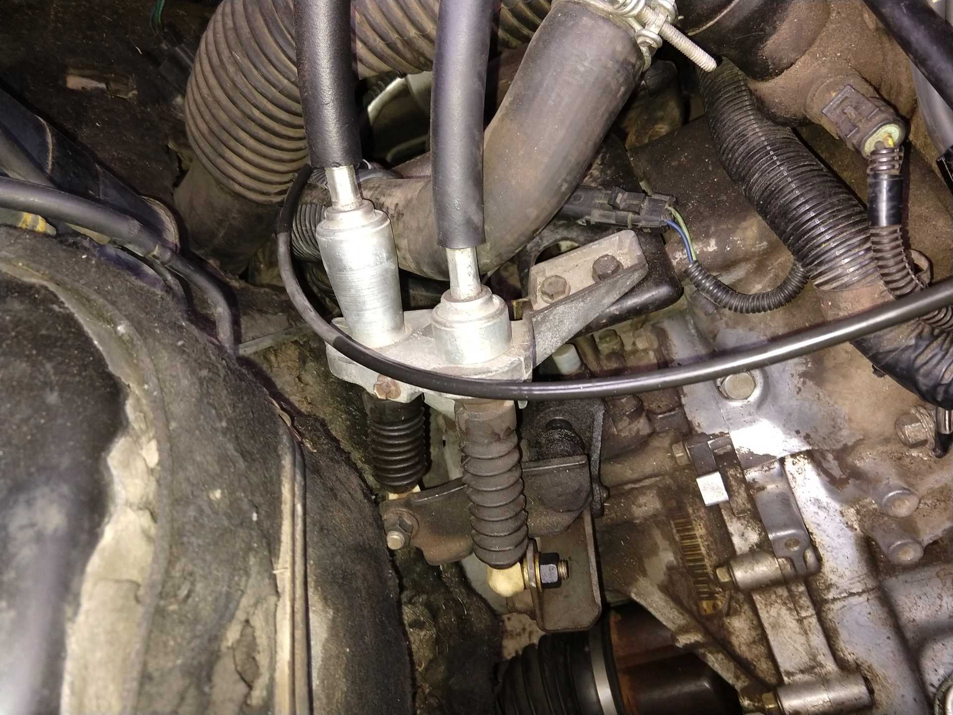 I ‘think’ the control box has been swapped for one from a front wheel drive car. The cables would come from the firewall to the back of the engine so it would make sense. Hell, maybe even the whole box is from a front wheel drive car but no way to really tell. I cannot see how I can really make the current configuration work so I either have to find a proper control box for the gearbox or a complete new trans.