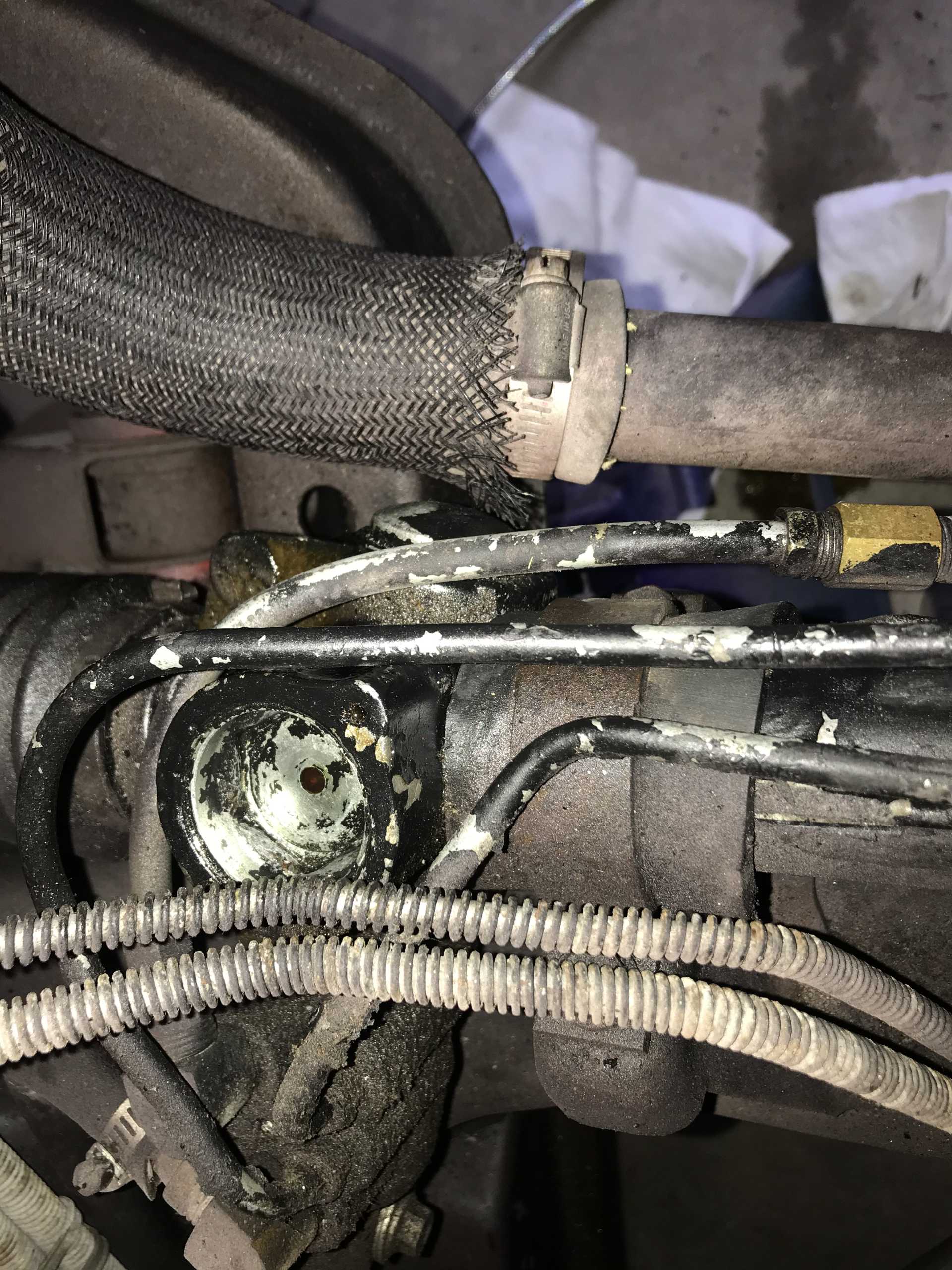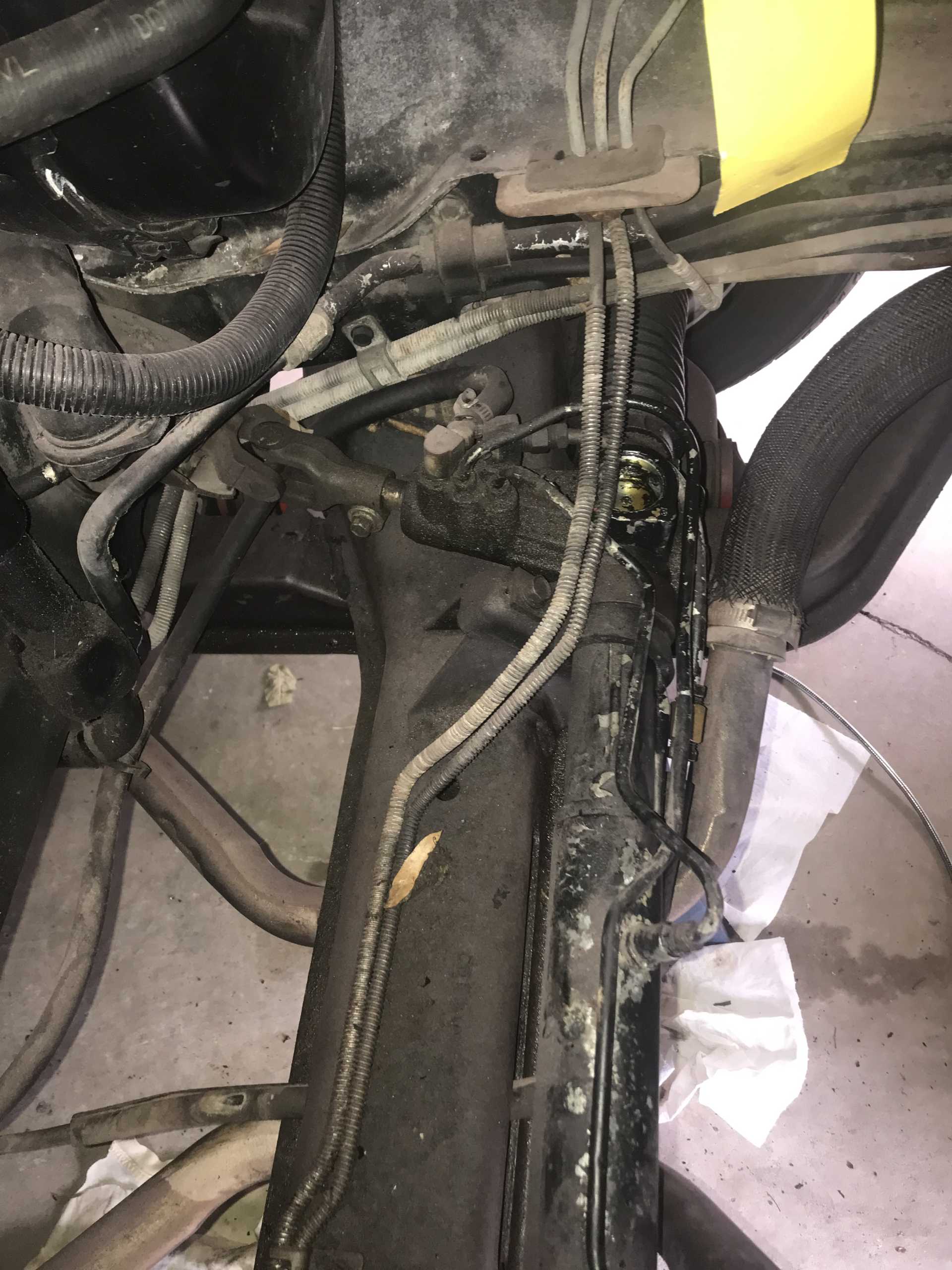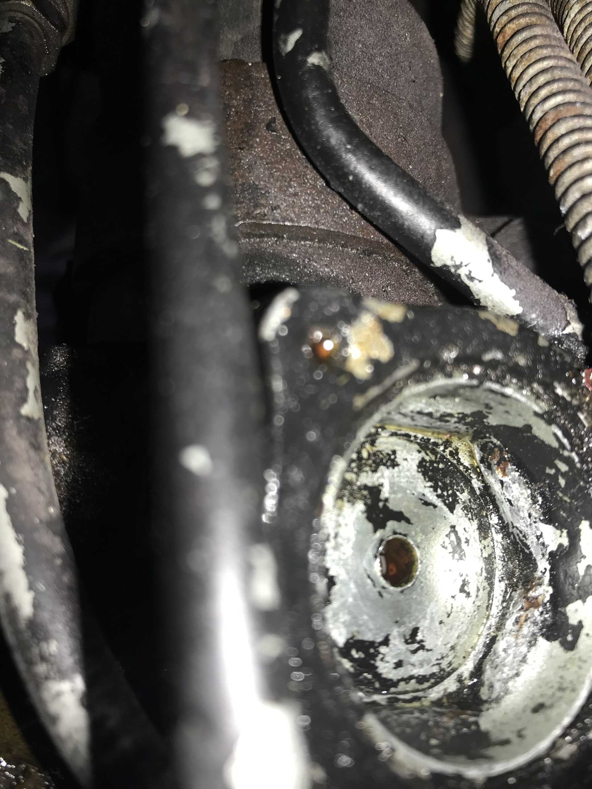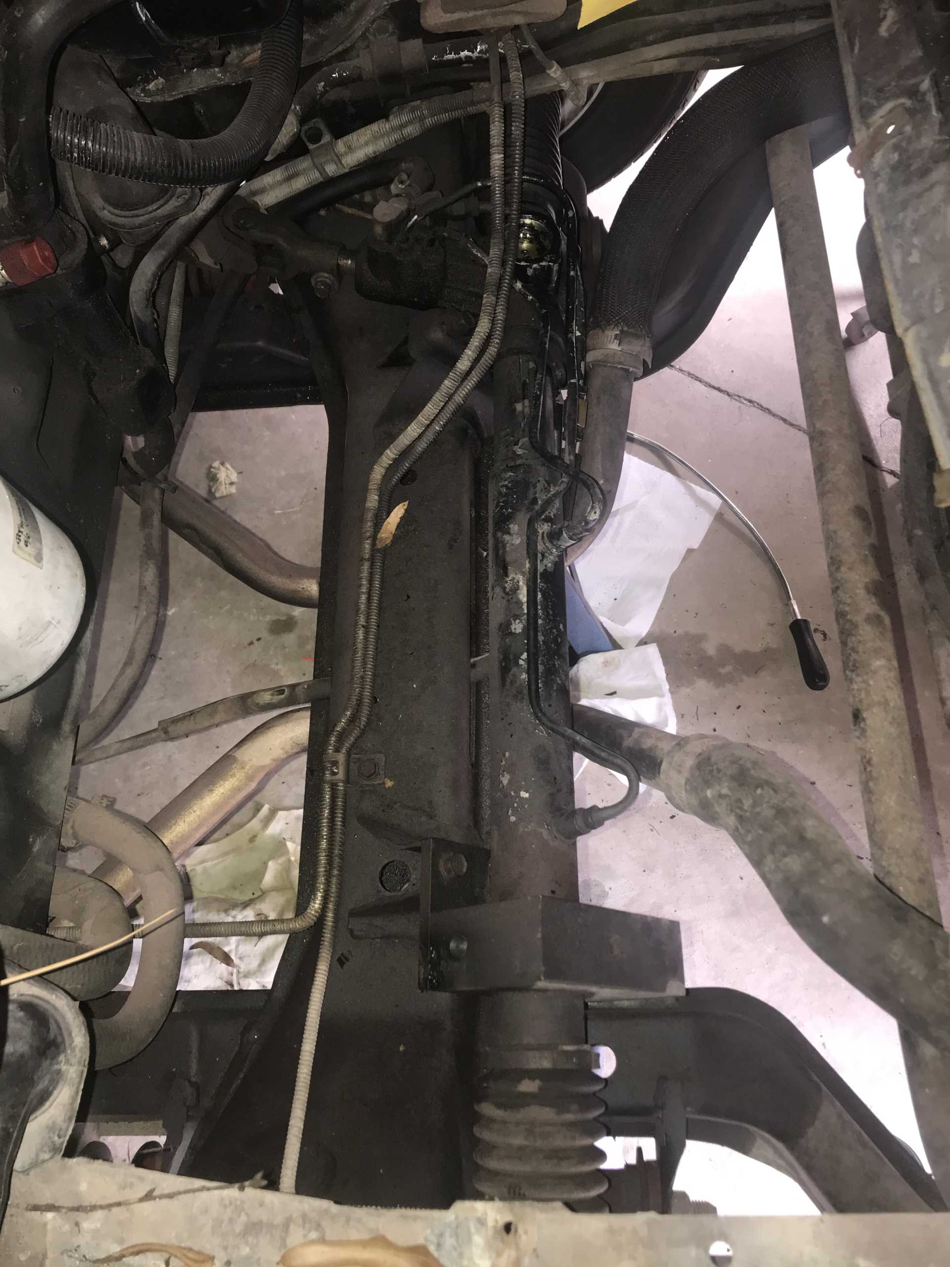 Finally have some decent weather in Florida to work on the 1988 MERA without sweating to death. I pulled the front tray out to look at the top of the PS rack. Here are the pictures. What started as a small trickle will now drain the reservoir in a week or two. I have no idea what that hole is in the center, will need to drop the car on the ground to crawl inside for a better look.