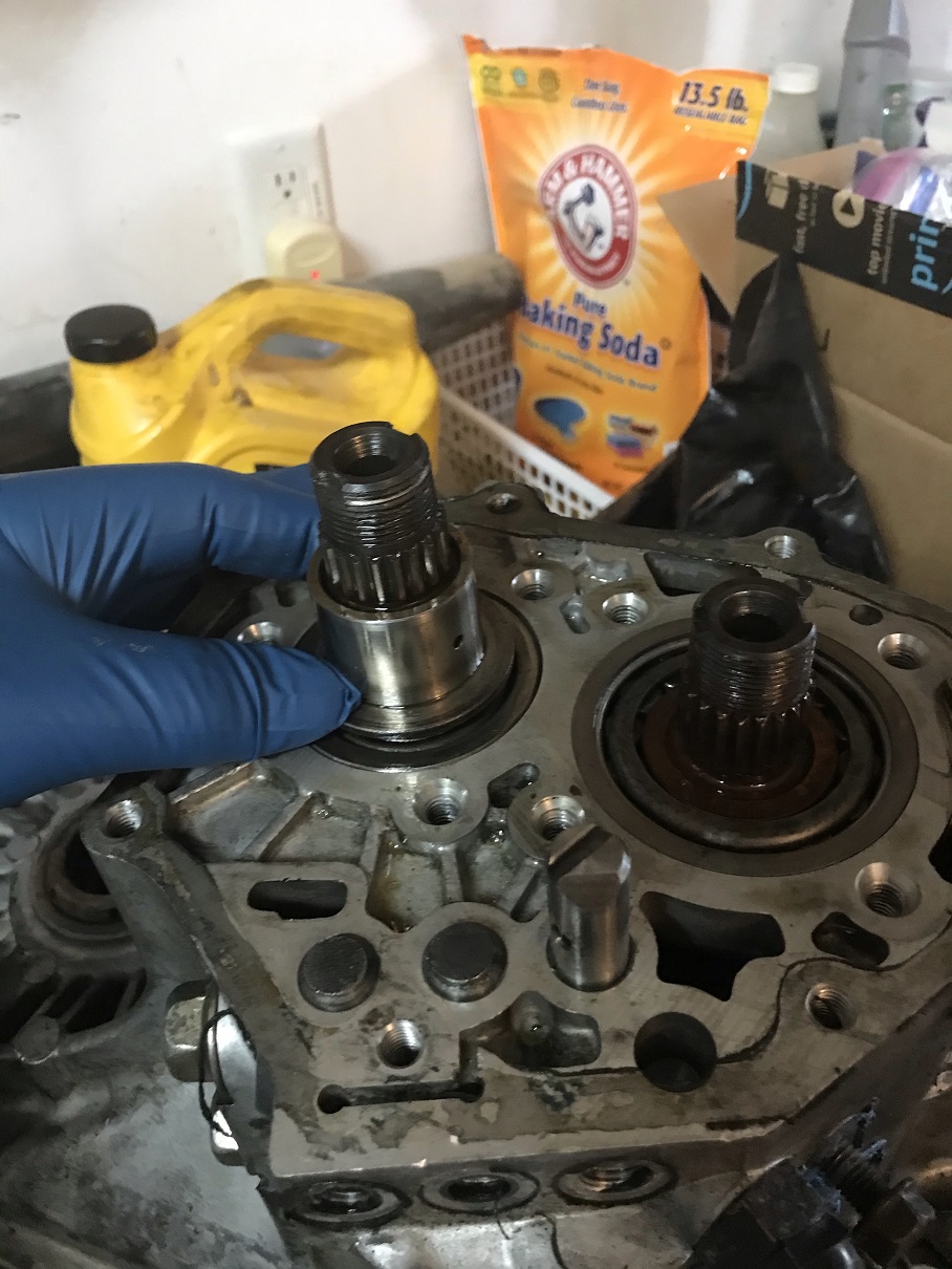I am trying to disassemble an Isuzu 5 speed transmission, more out of curiosity at this stage than with any hope it is repairable (found bits of metal by the drain plug!).