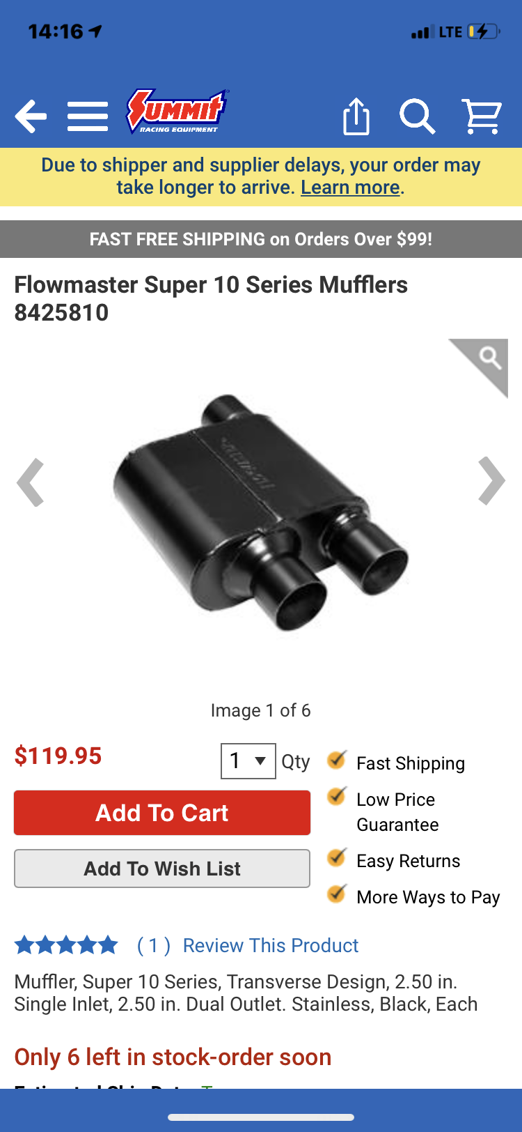 I saw a flow master muffler that looks like it will fit without cutting the trunk but have a feeling it’s going to be really loud which I don’t want lol here is a screen shot can that spin tech 343 muffler be sent to me so I can look it over[This message has been edited by pontiacfierokid1985 (edited 10-18-2020).]