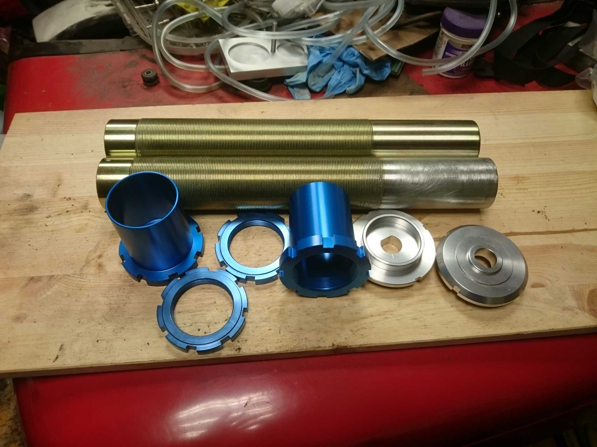 To add to this discussion. I'm currently driving toward installing the koni generic dual adjustable inserts into a stock fiero housing. These will require the stock housings to be cut and a gland nut adapter welded to the top. I found some near perfect koni gland nut adapters from a speed shop in Australia and currently having the ID turned to 2.005" to fit the fiero strut.