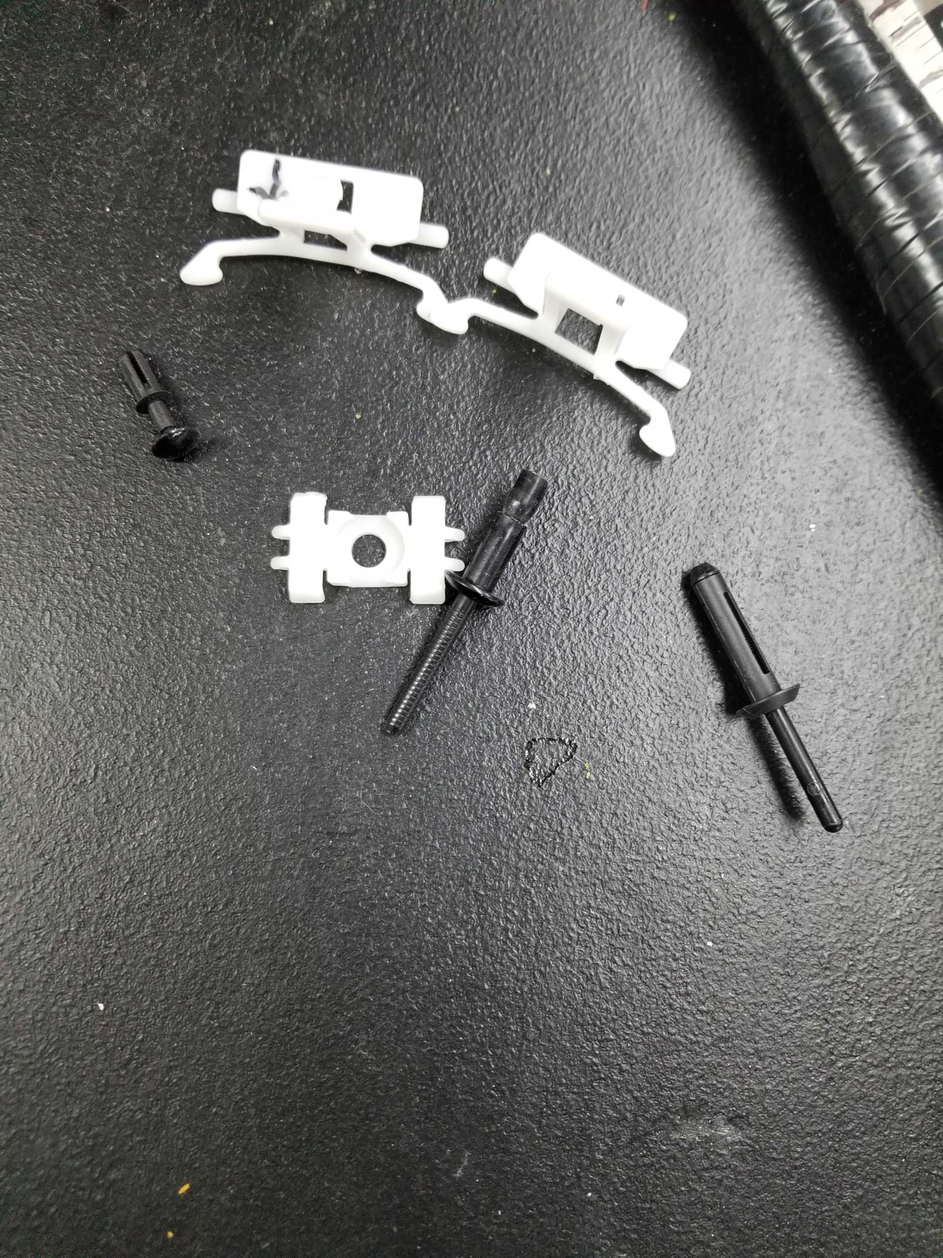 This is the driver side. You can get an idea of how the clips mount. There should be about 7 total rivets holding each panel on and that little tiny rivet goes on the molding inside the door jamb.