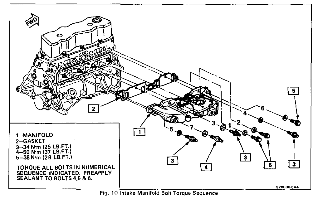 Bolts... Seems several different versions depending location. + most or all take hardened washers to spread load so manifold won't break. Long bolts or missing washers then bolts can bottom out or worst. Can't use standard washers that bends etc. Torque values are for Clean Dry Threads unless some threads need sealer etc.