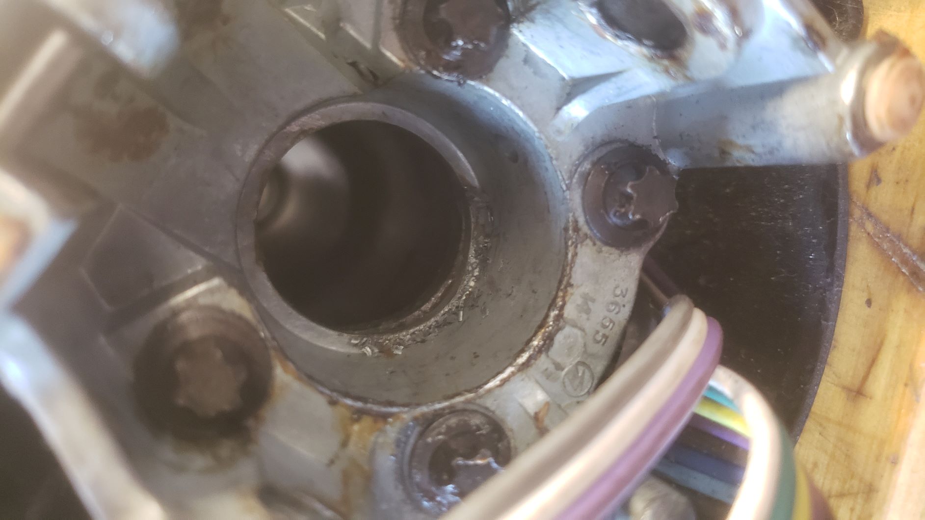 I did find some wear on the inside of the lower column in a weird spot. It looks like the lower steering shaft has been contacting. There was a rub mark on the shaft, but because it is harder than the housing there is no damage to it.