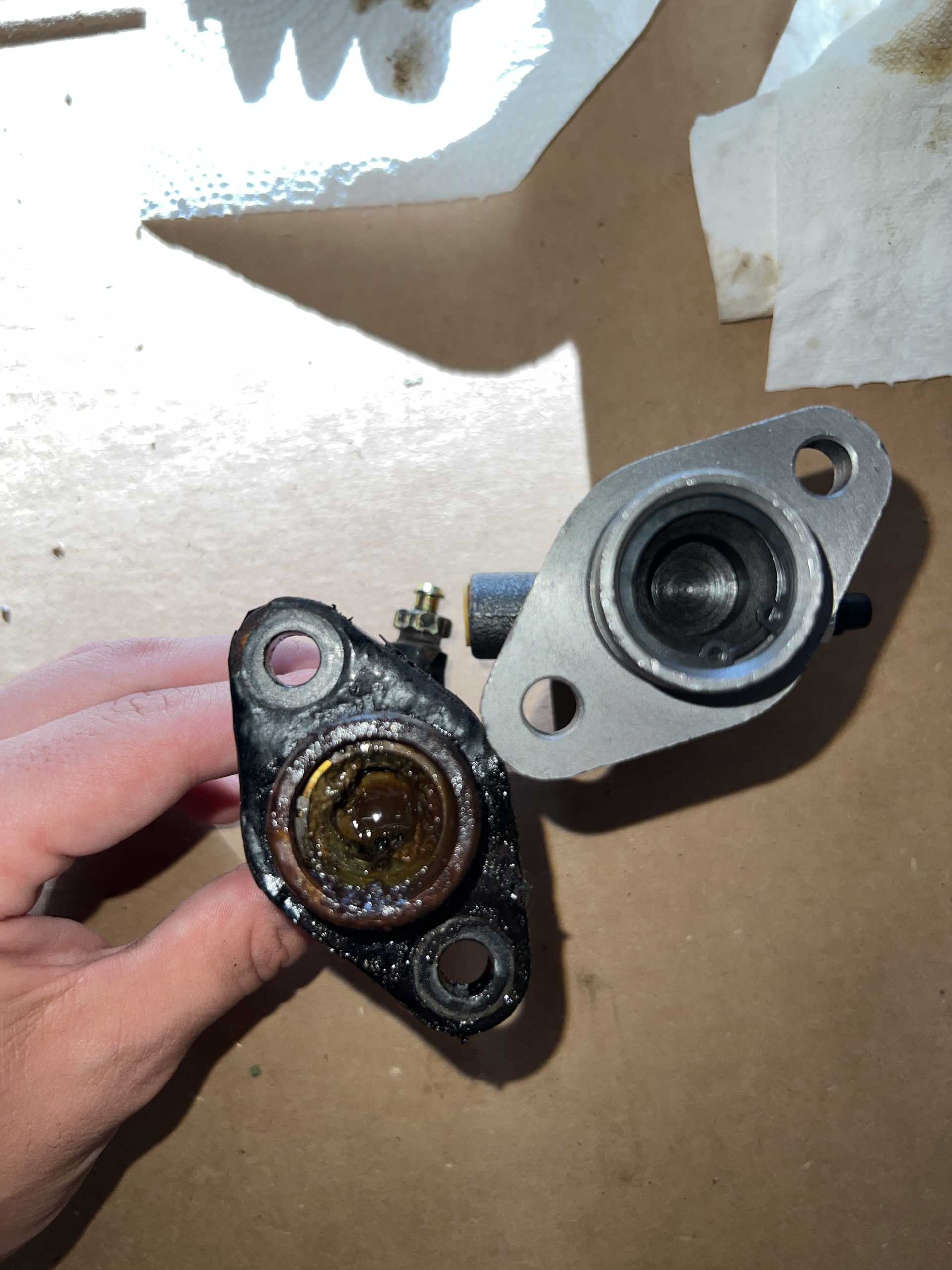 ...let me tell you what an incredible different a slave cylinder replacement will make!! First off, get yourself a new slave cylinder. Then, if you are unfortunate enough to not be bale to get one of Rodney's cast aluminum ones, order yourself his dual seal piston.
