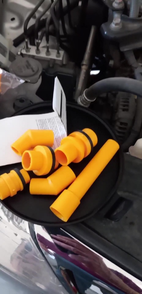 I don't understand how this coolant fill funnel could be of any use on a Fiero... unless the front of the car is raised so much that the rad cap becomes the highest point of the cooling system.