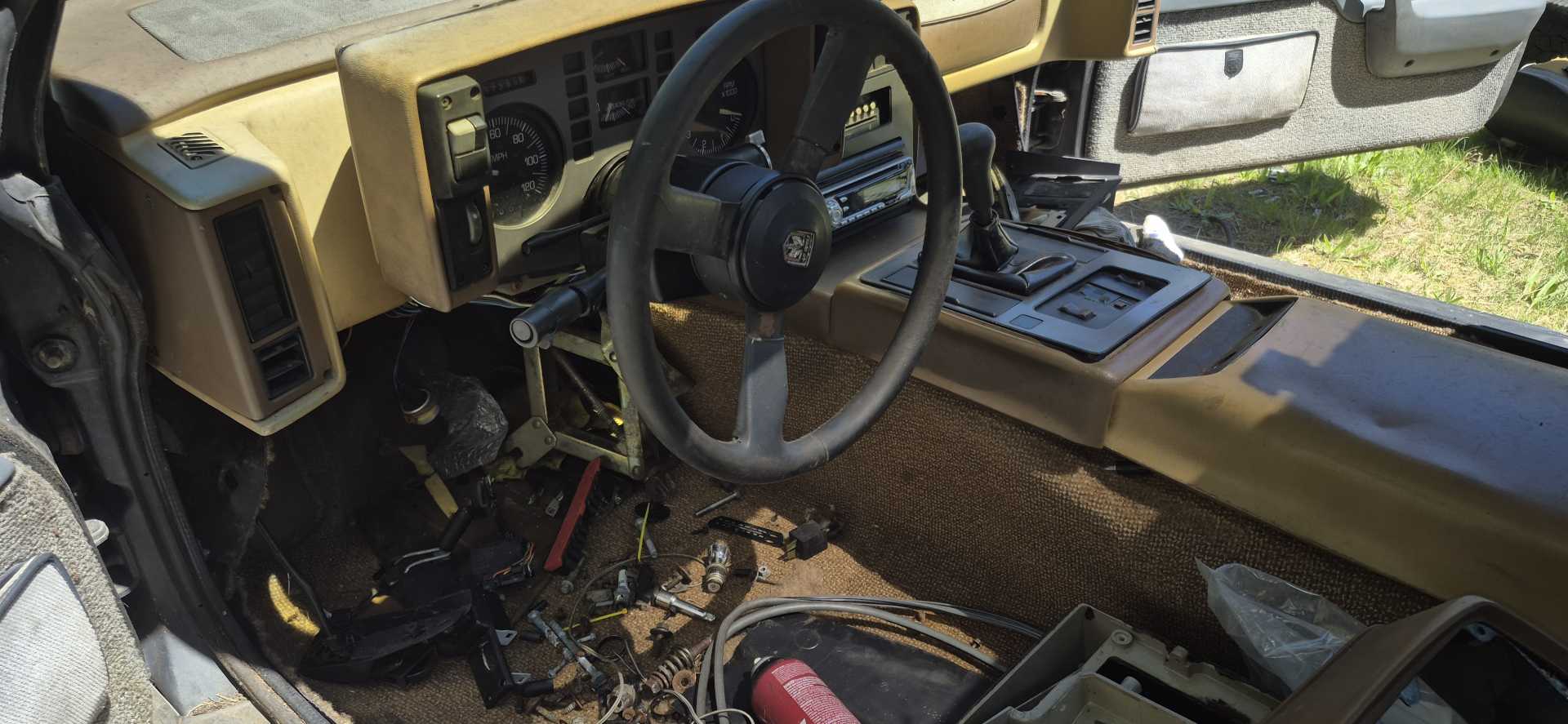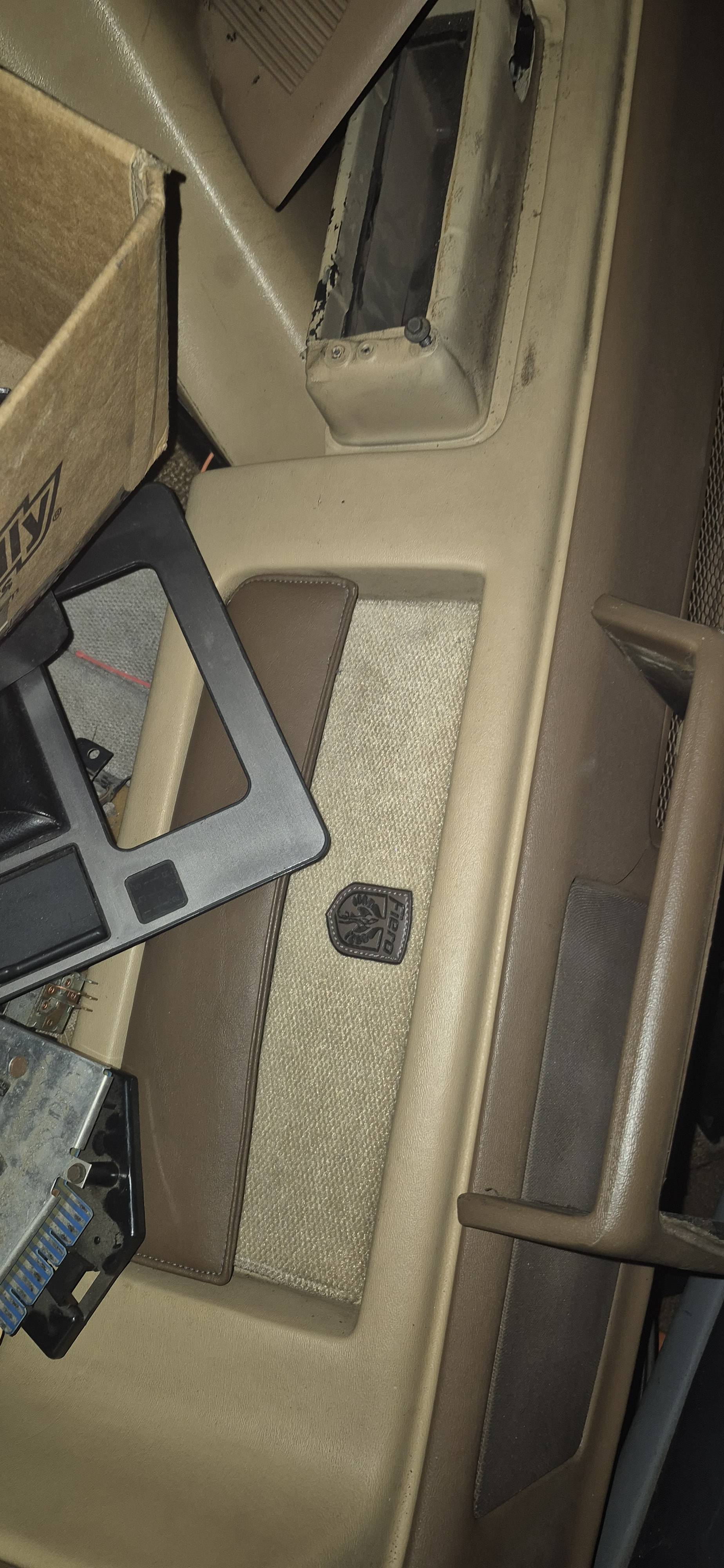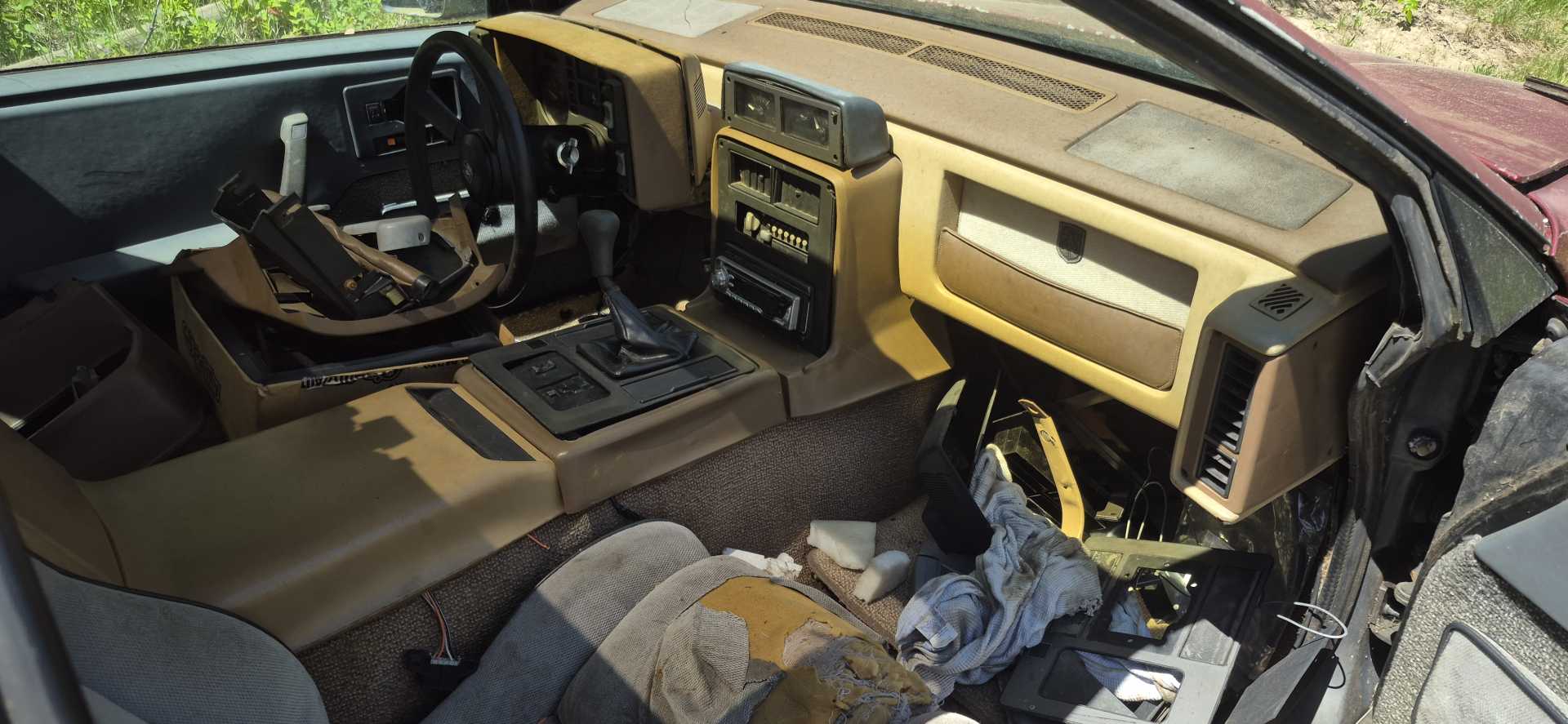 dry fit done. it isnt great but at least its just everything in the center that needs regluing and plastic repair. i do have decent color matched gt seats ready to go in whenever i reglue everything and finish the fuel pump ive been putting off. forgive the mess its been the fiero storage for everything while its interior has been mostly apart and sitting on the floor