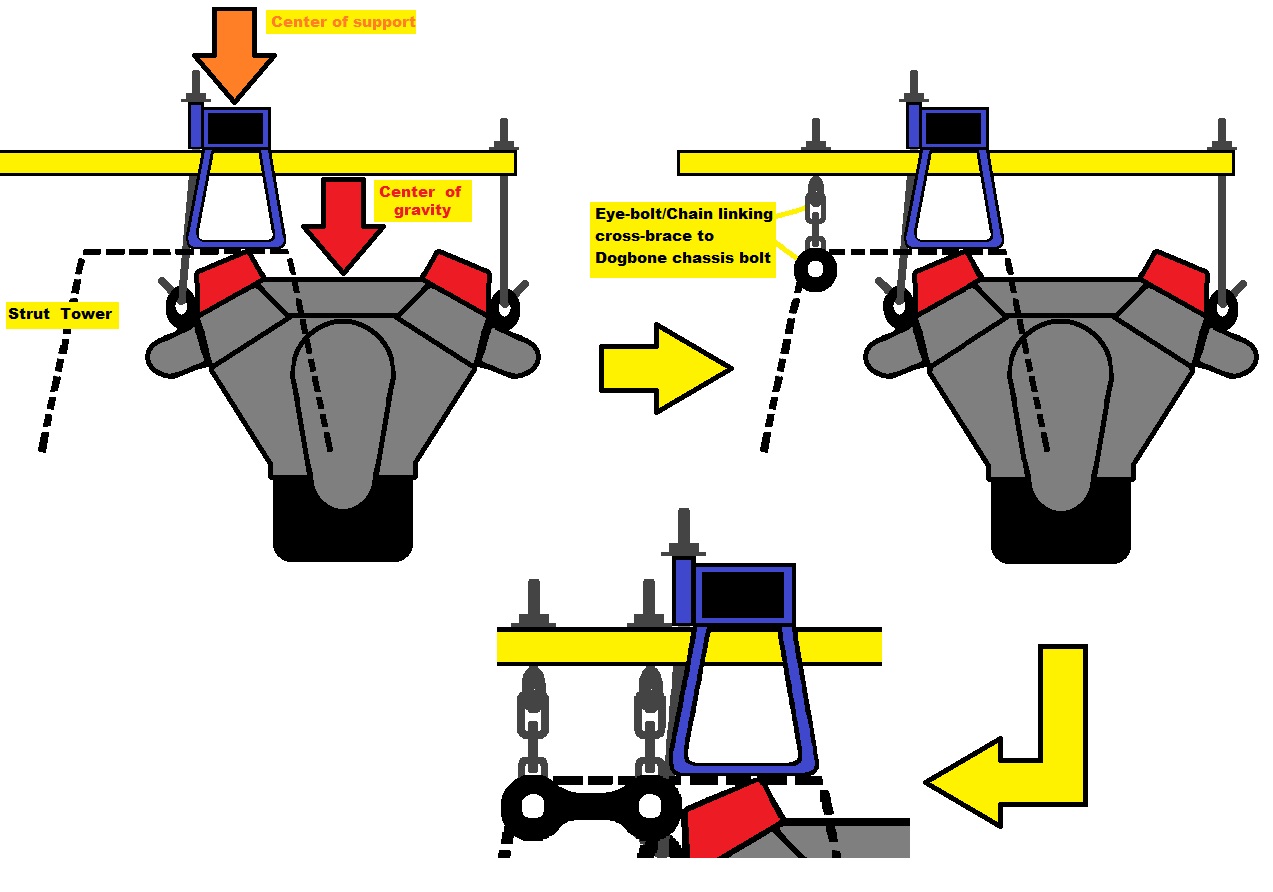 That is my preferred method for transmission work. I built mine for the LS4/F40 application. The side plates lock into existing holes in the top of the strut tower, rests on the top of the frame rails, then when the bar is bolted in place, everything is locked into position.